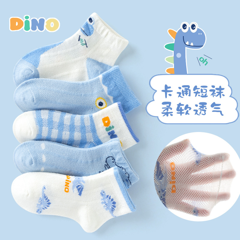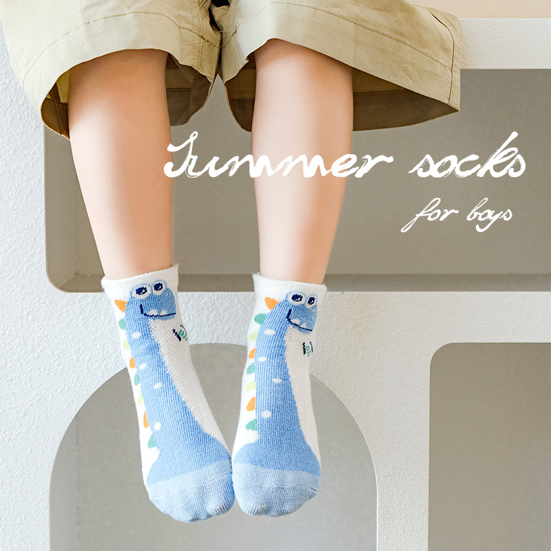 | nameOriginal | Spring and summer boys socks mesh breathable socks cartoon dinosaur boys boat socks Joker large children cotton socks wholesale |