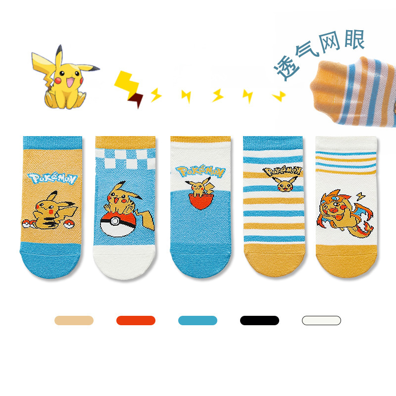 | nameOriginal | Spring and Summer Cartoon Colorful Socks Pikachu Children's Socks Boys Boat Socks Girls Shallow Mouth Short Socks |