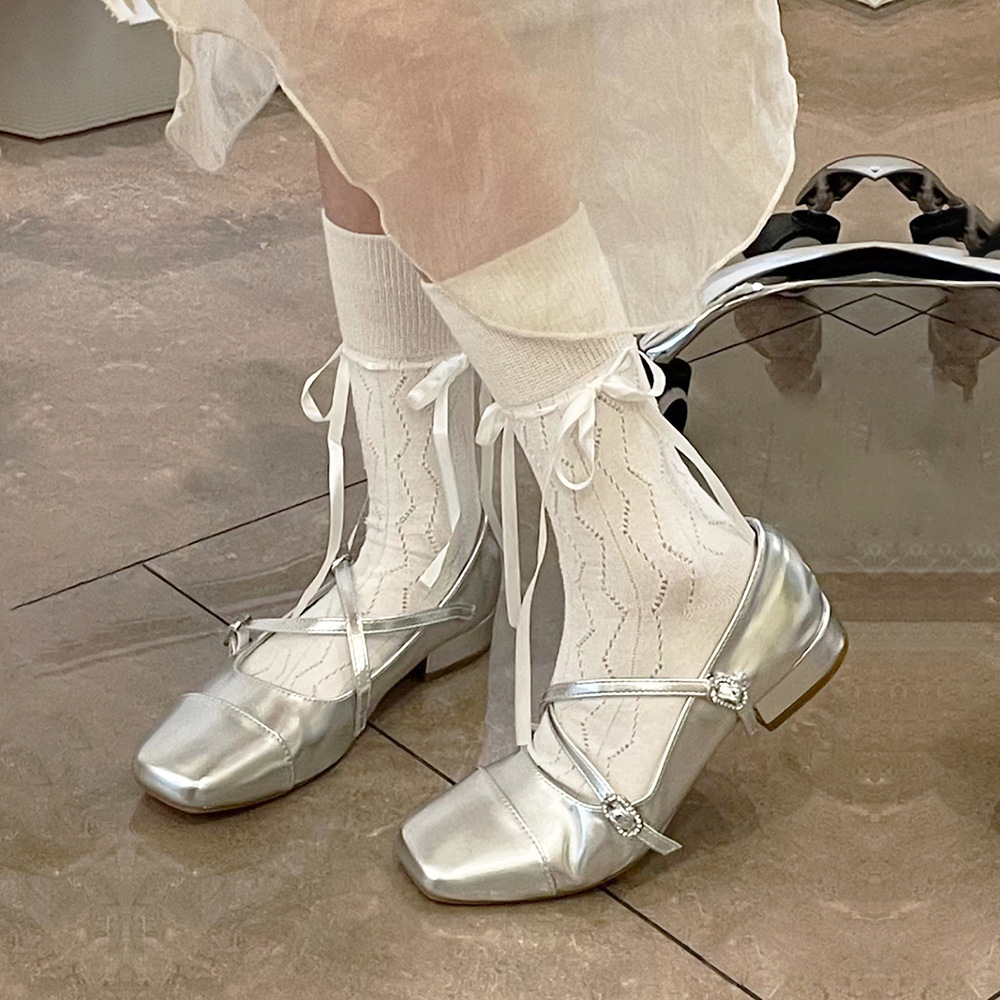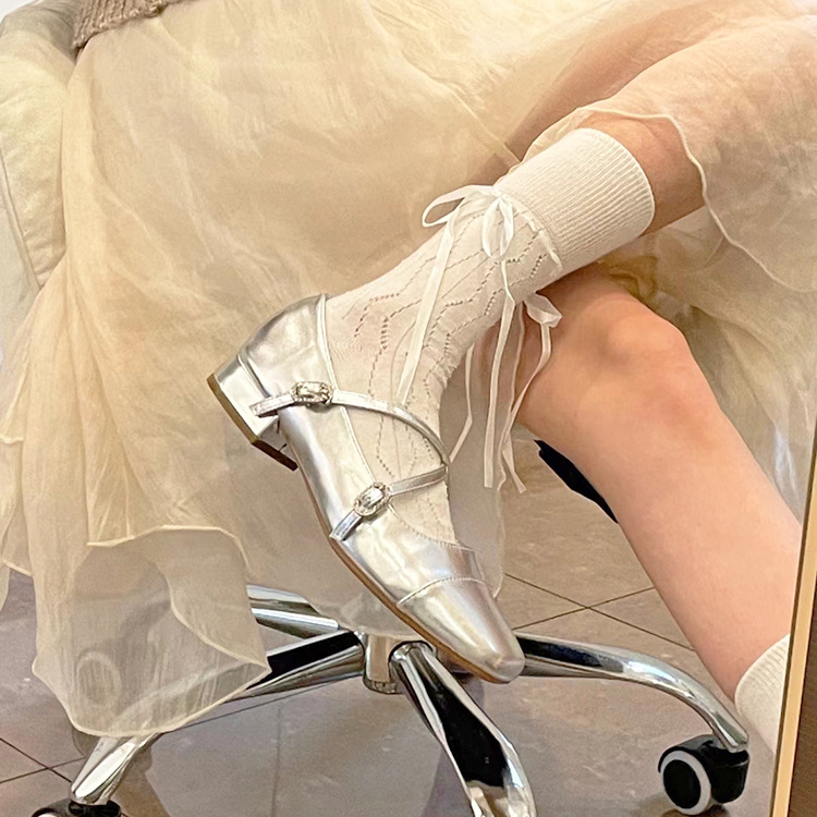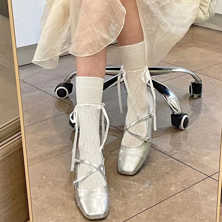 | nameOriginal | Spring and Summer Chanel Style Ribbon Strap Bow Mid-length Stockings Children's Ballet Style Hollow Vertical Stripes Piled Hacked Calf Stockings |