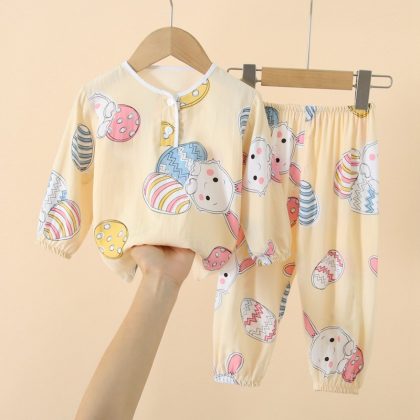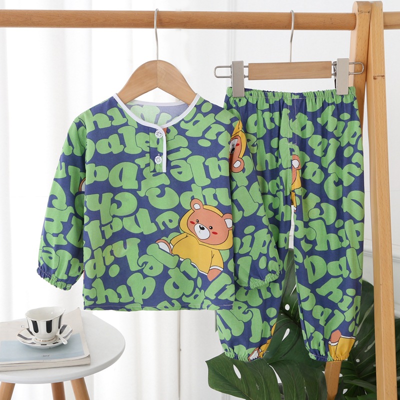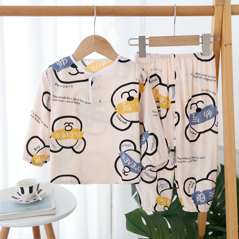 | nameOriginal | Spring and Summer Children's Cotton Silk Long-sleeved Pajamas Boys and Girls Cotton Silk Bundle Anti-mosquito Air Conditioning Home Clothes Oriental Silk Suit |