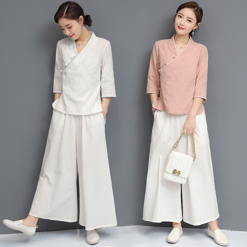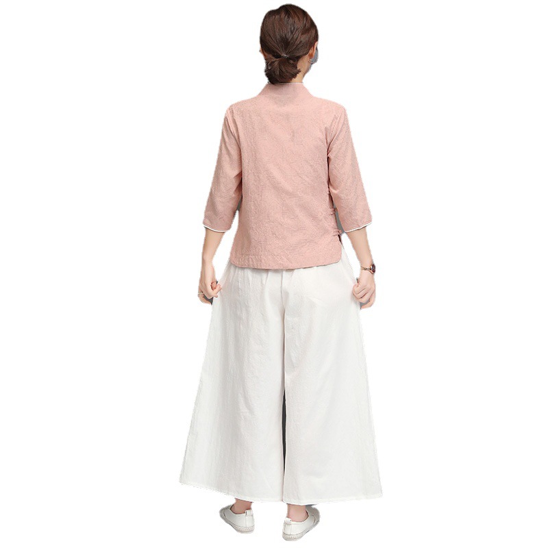 | nameOriginal | Spring and Summer Chinese style cotton linen yoga clothes suit women's vintage jacquard Hanfu Ju Shi clothing meditation tea man clothes two-piece suit |