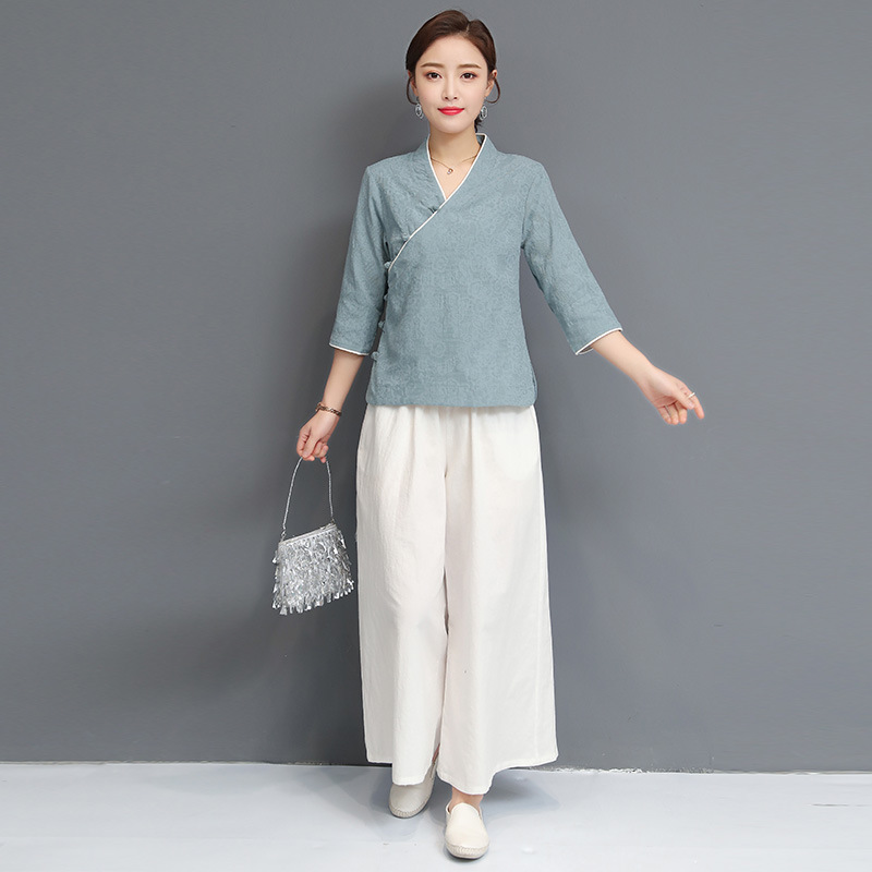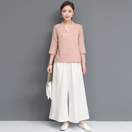 | nameOriginal | Spring and Summer Chinese style cotton linen yoga clothes suit women's vintage jacquard Hanfu Ju Shi clothing meditation tea man clothes two-piece suit |
