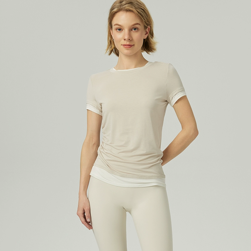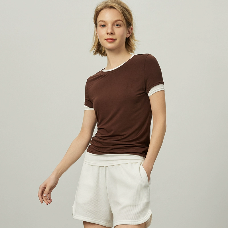 | nameOriginal | Spring and summer contrasting color slim fit short-sleeved breathable women's fake two-piece |