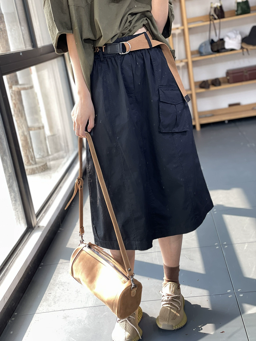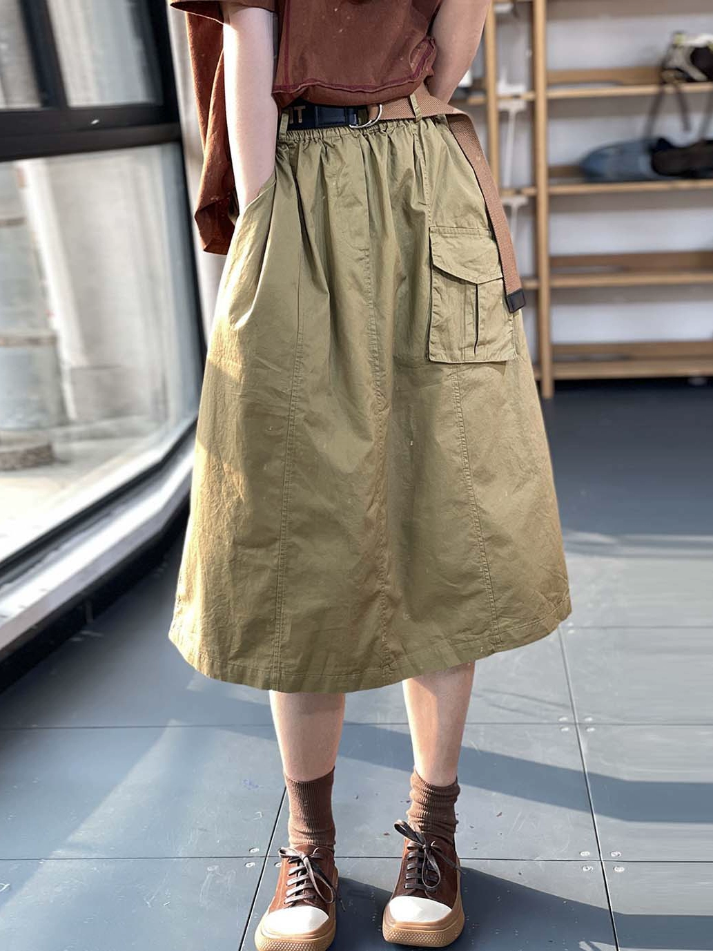 | nameOriginal | Spring and summer cotton loose slimming solid color A-line skirt overalls |