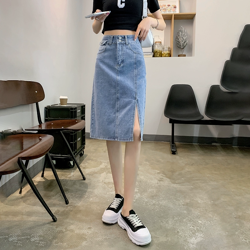 | nameOriginal | Spring and summer denim high-waist A-line slit skirt |