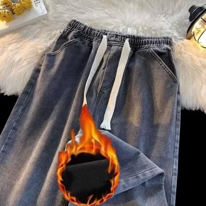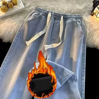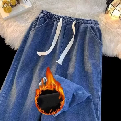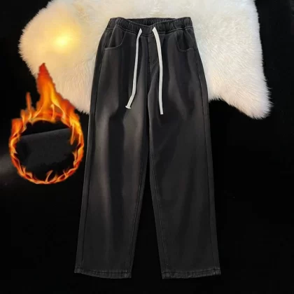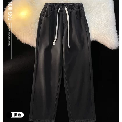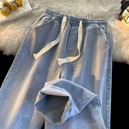 Spring and summer elastic waist student straight vintage jeans