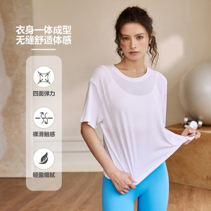 | nameOriginal | Spring and Summer Fashion Comfortable Naked Short-sleeved T-shirt Petals Knitted Breathable Moisture-wicking Sports Short Loose Yoga |