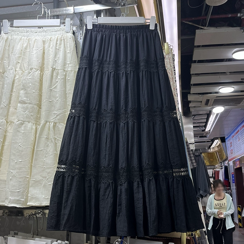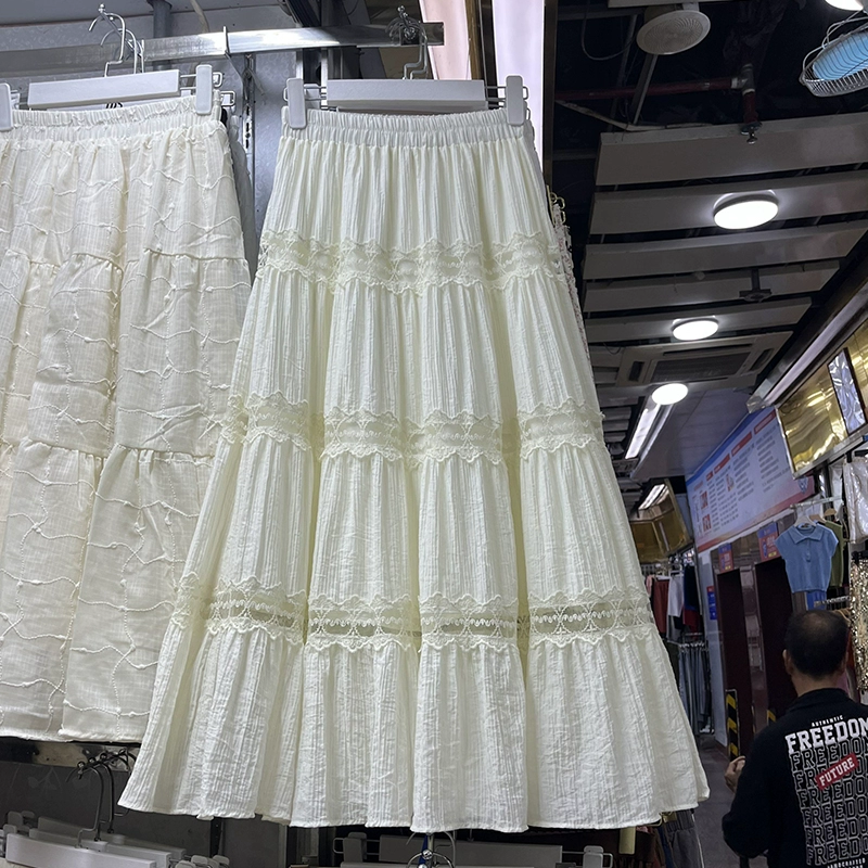 | nameOriginal | Spring and summer French solid color stitching A-line half cake skirt |