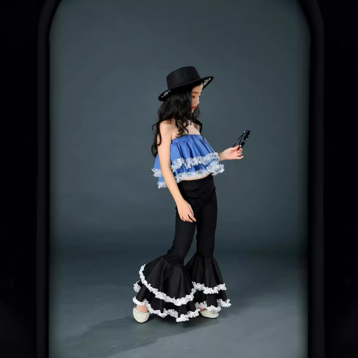 | nameOriginal | Spring and Summer Girls' Chanel Style Suit New Style Chest Wrap Top + Lace Lace Flared Pants Suit Children's Celebrity Style |