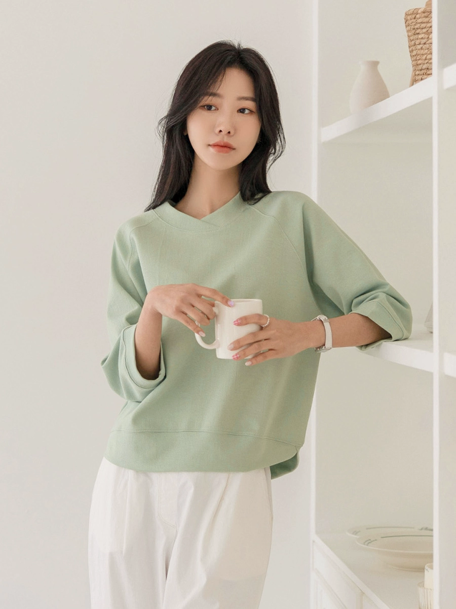 | nameOriginal | Spring and summer green V-neck three-quarter sleeves fashionable and chic sweatshirt |
