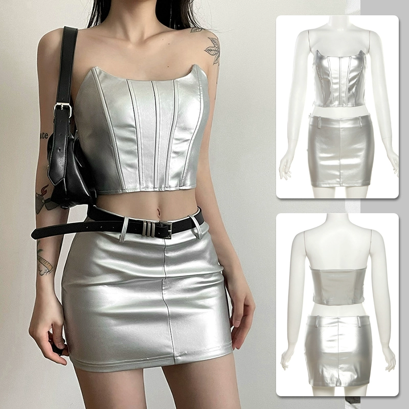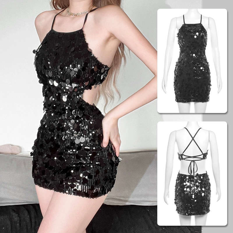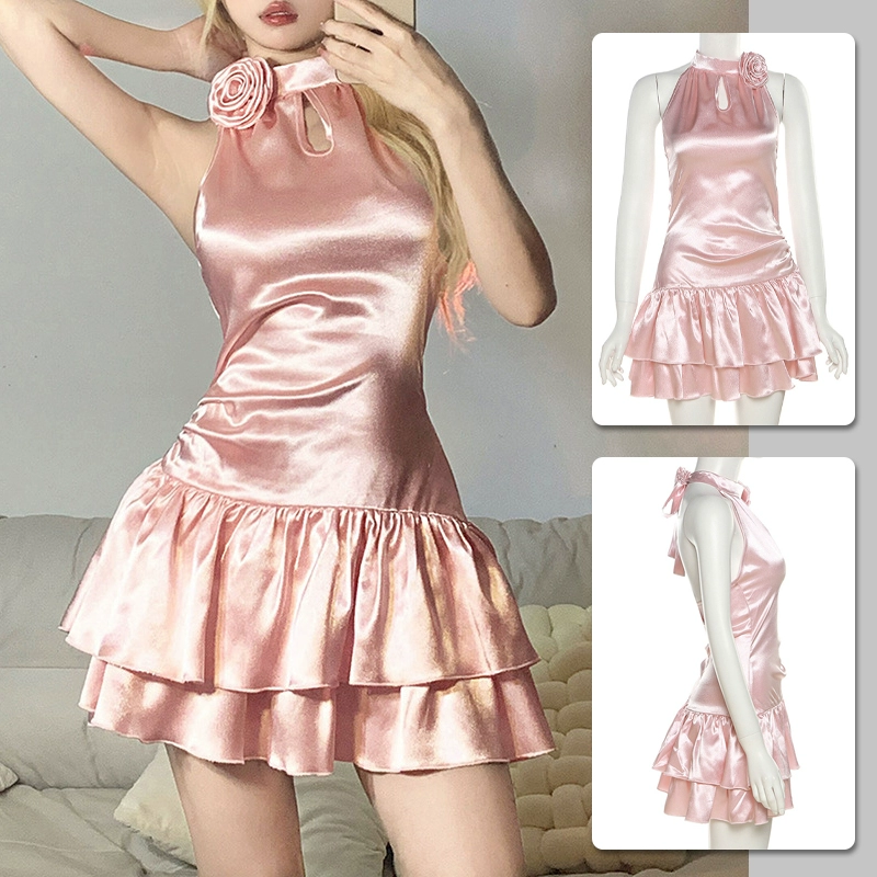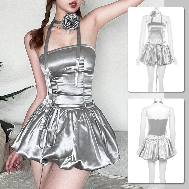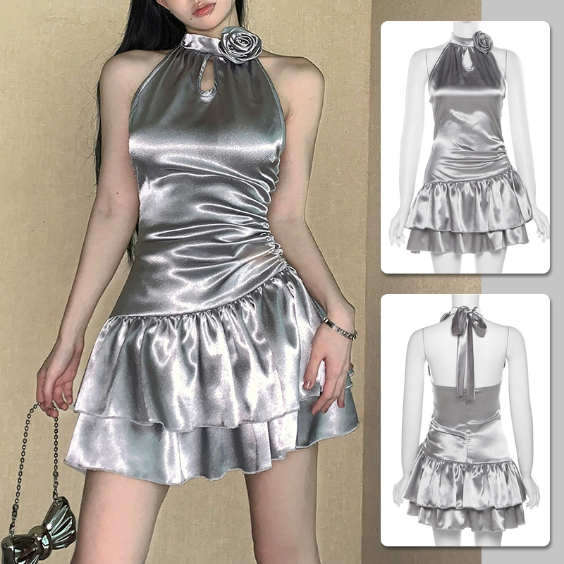 Spring and summer halter dress silver slim fit suspender