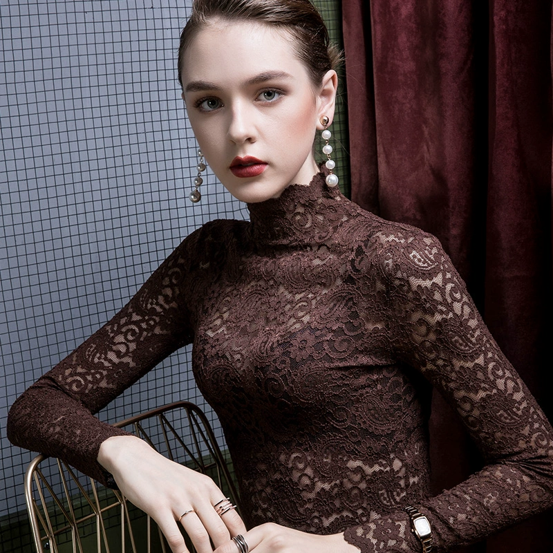 | nameOriginal | Spring and summer high collar lace bottoming shirt for women slim fit 2024 new jacquard hollow sexy western style women's tops and small shirts |