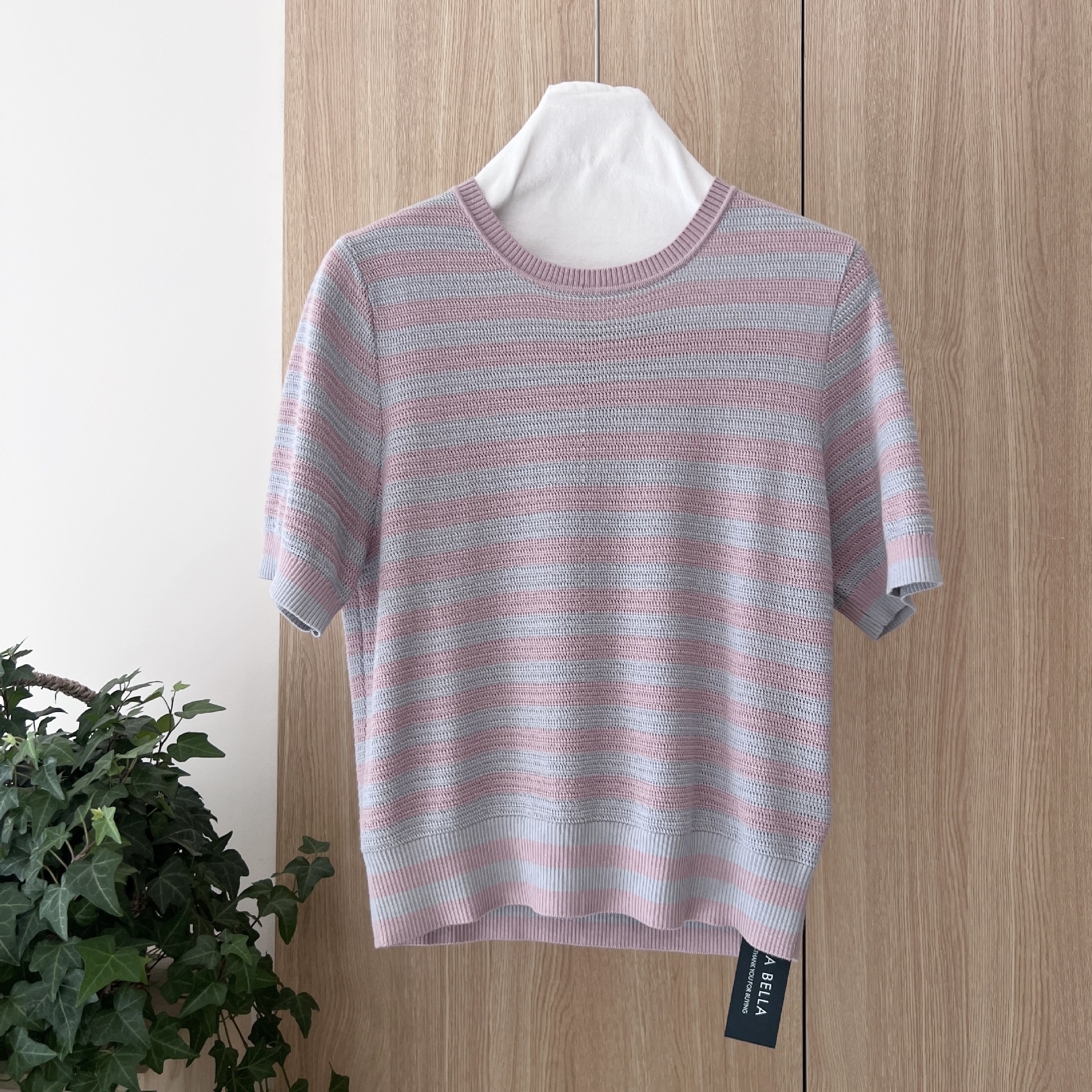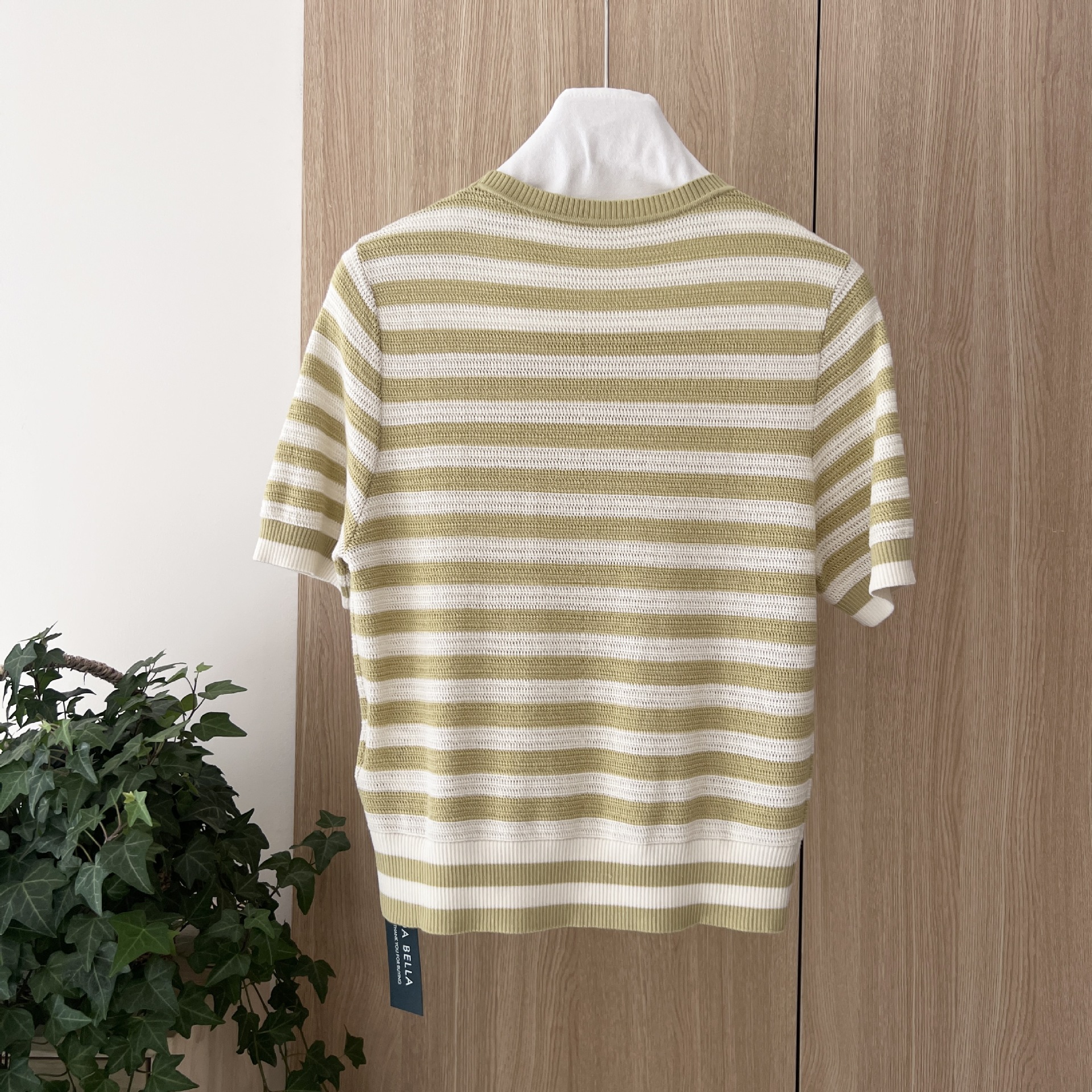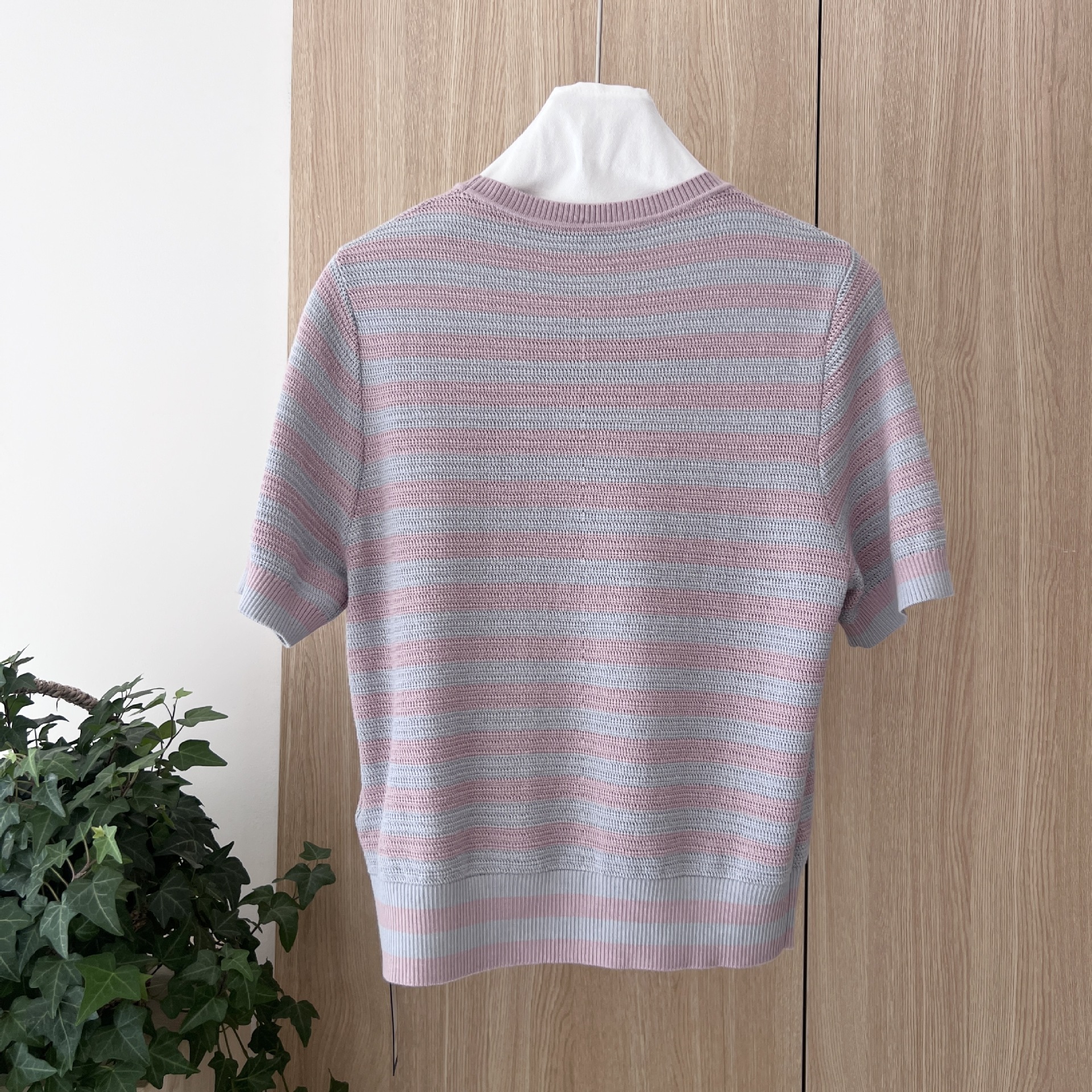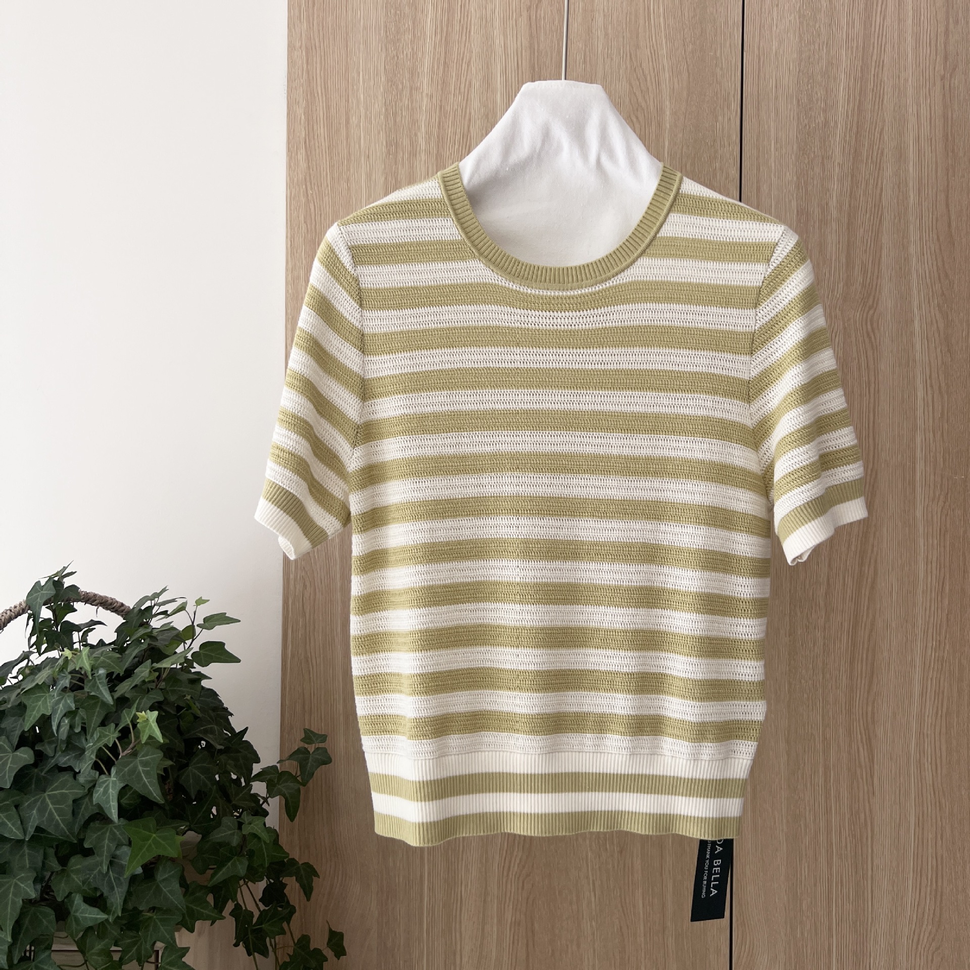 | nameOriginal | Spring and summer in stock new contrast striped temperament mulberry silk wool short sleeve sweater 8742 |