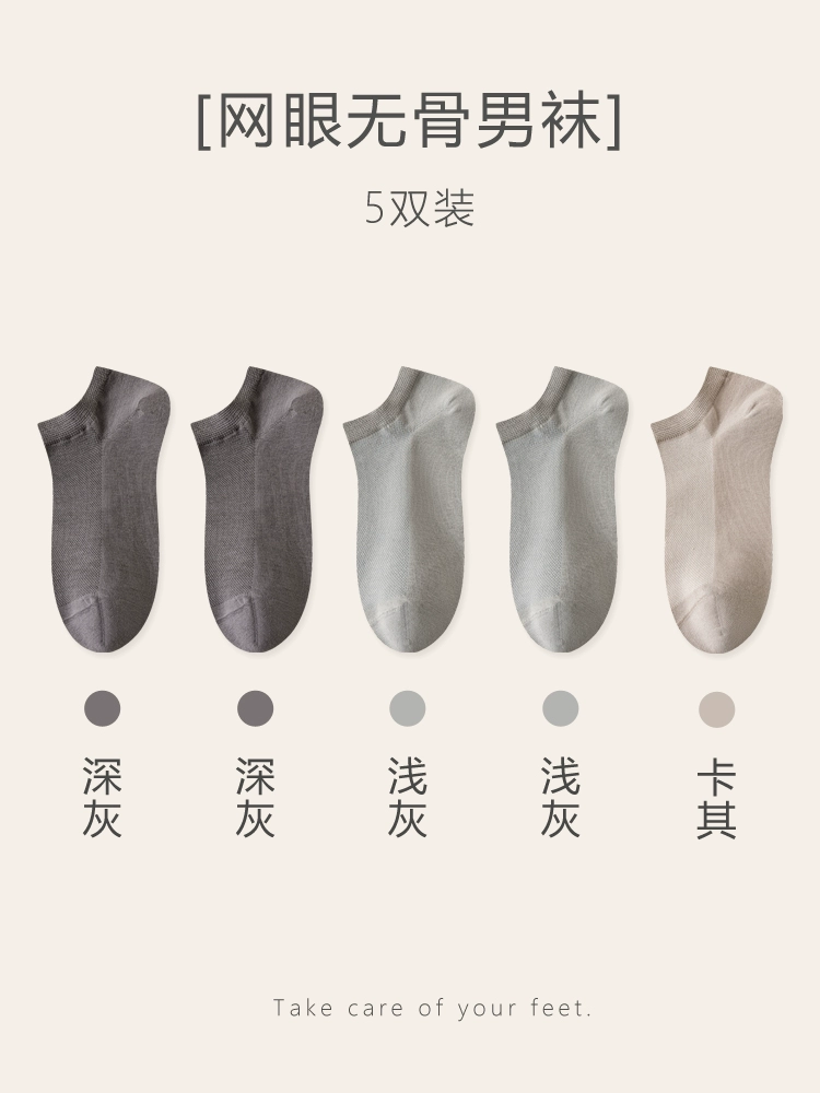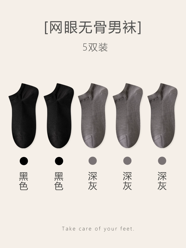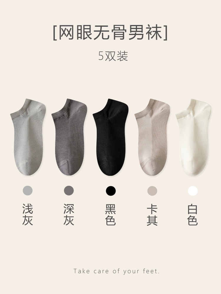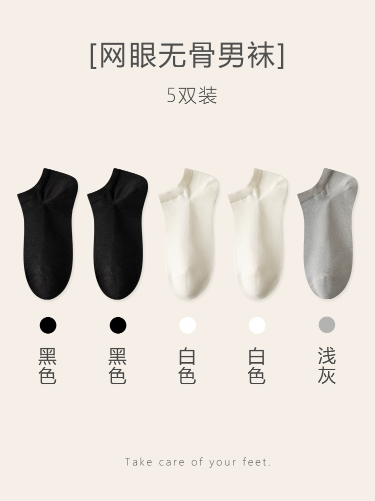 Spring and summer invisible socks thin men's shallow socks low-top boat socks mesh anti-odor sweat-absorbent non-slip boneless socks