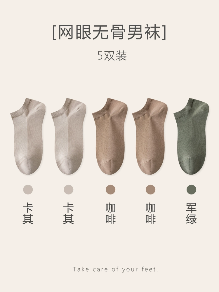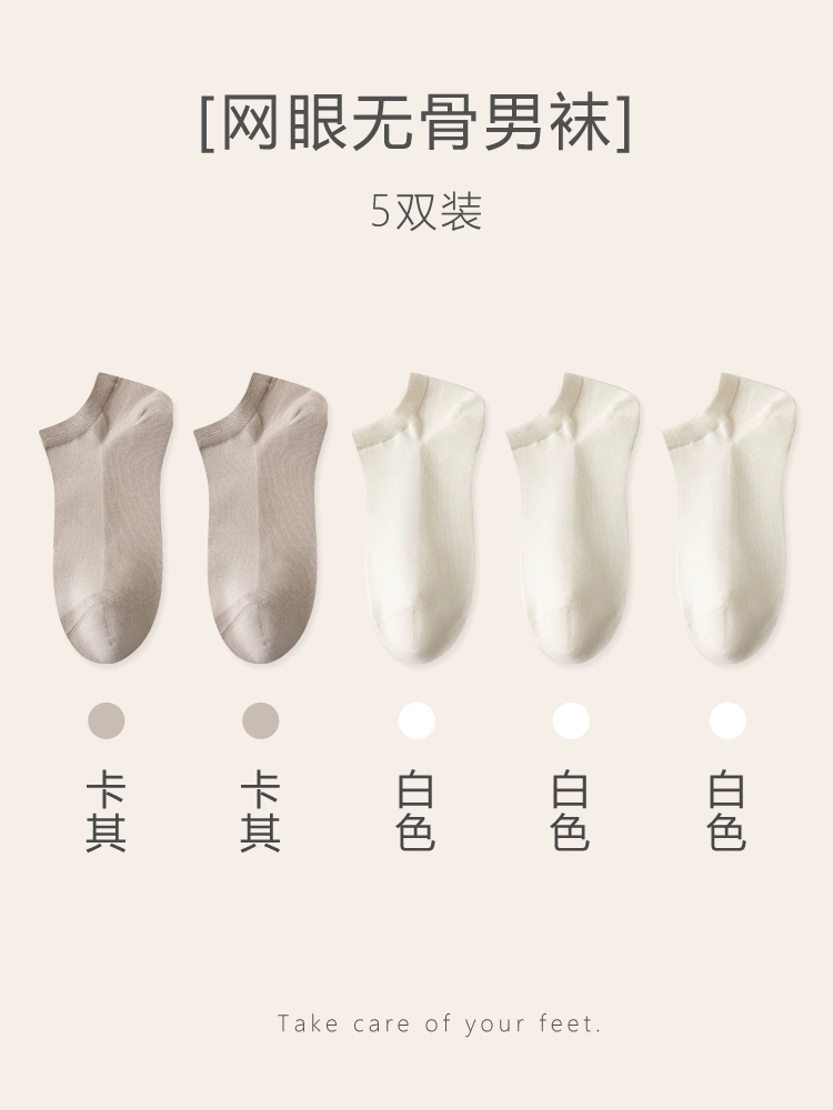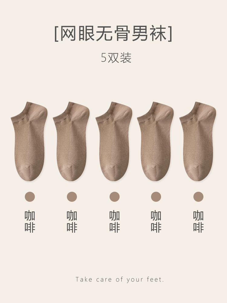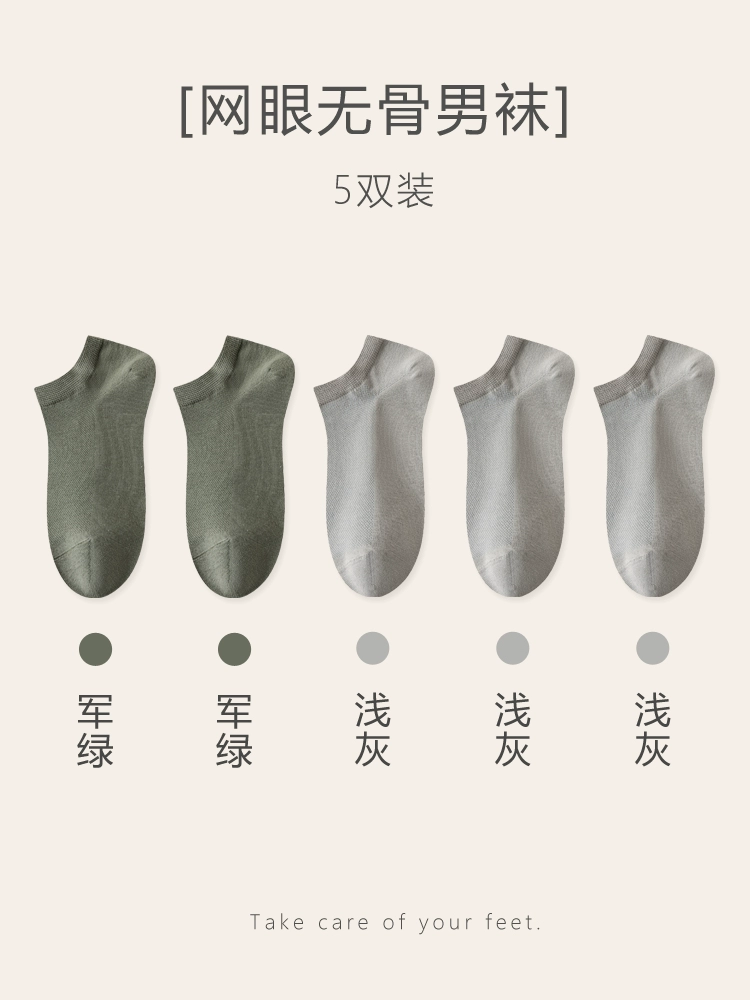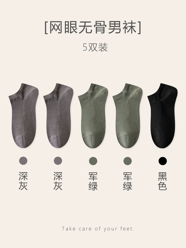 Spring and summer invisible socks thin men's shallow socks low-top boat socks mesh anti-odor sweat-absorbent non-slip boneless socks