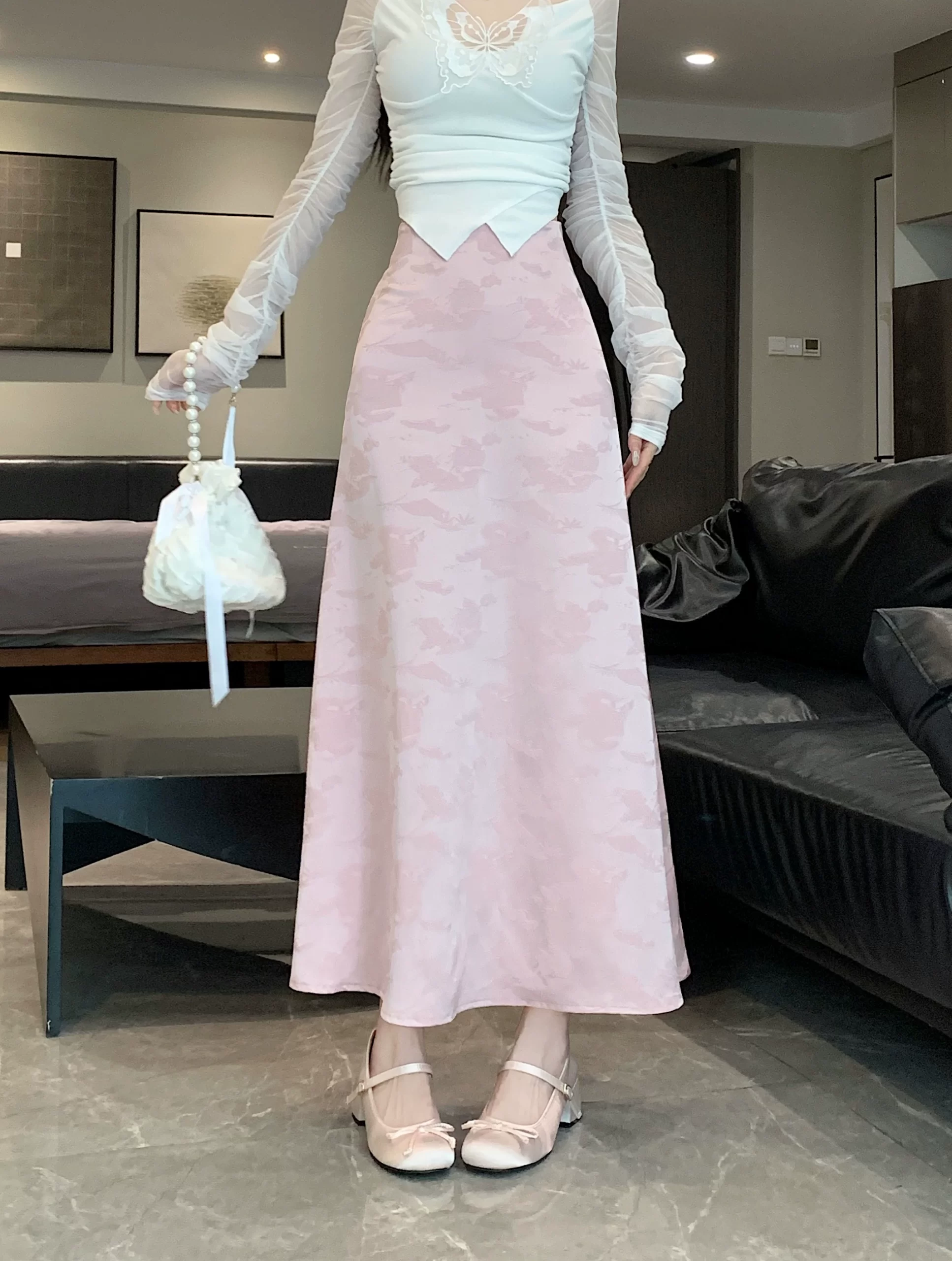 Spring and summer jacquard Chinese style over-the-knee retro skirt