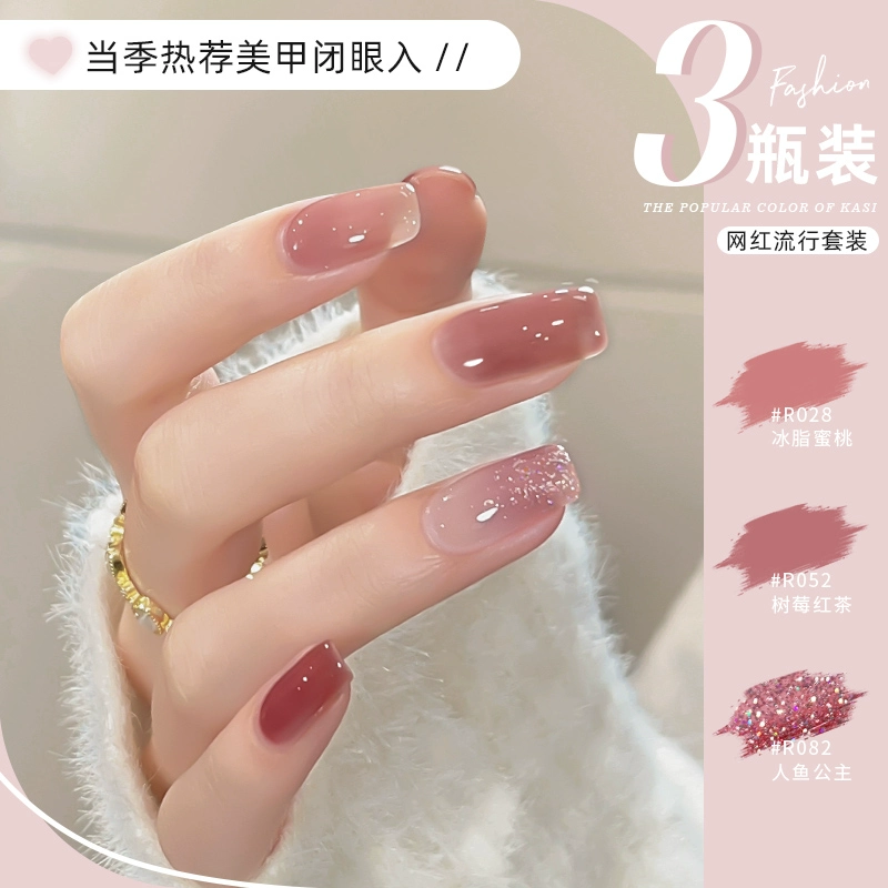 Spring and summer jelly pink full set of special nail polish