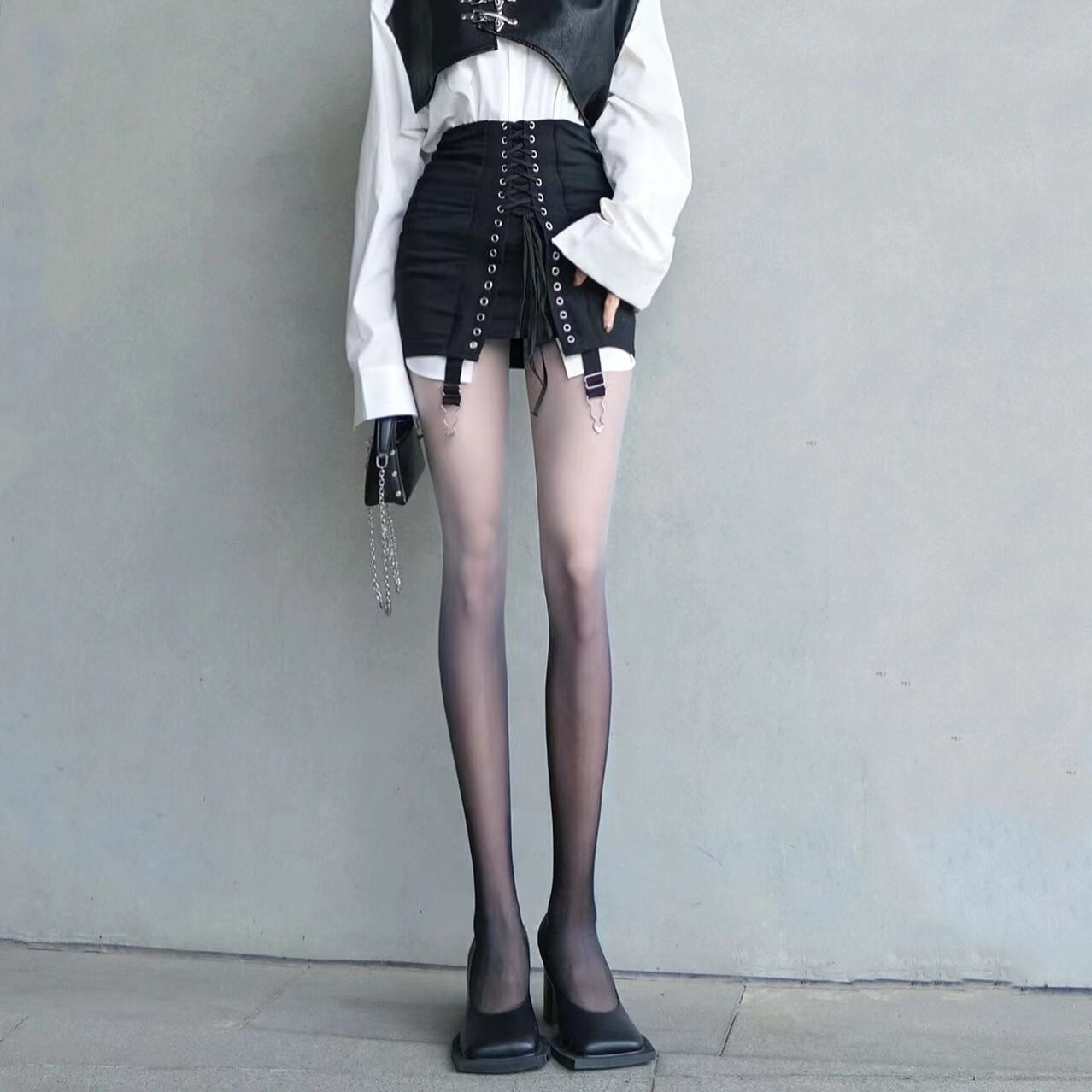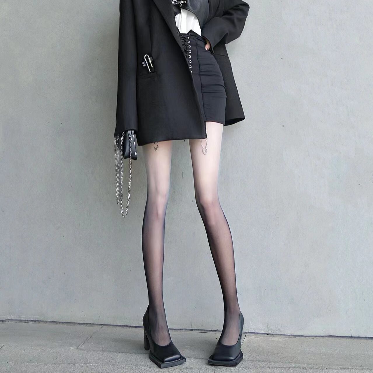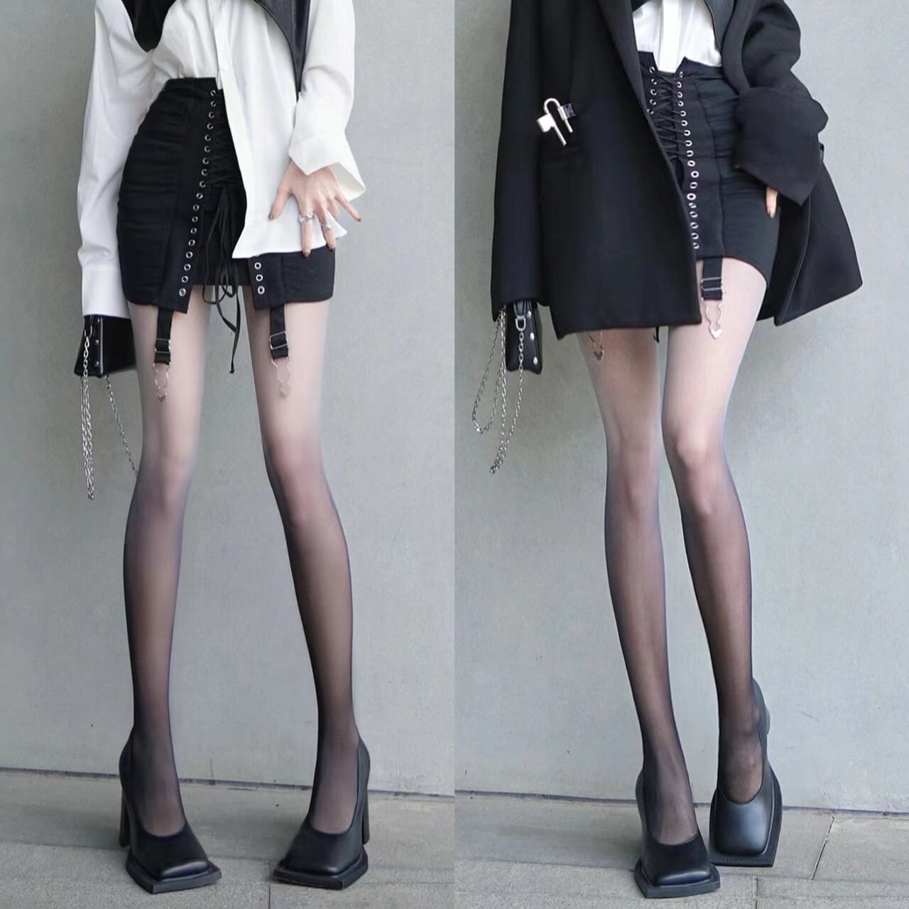 Spring and Summer JK Black Silk Sexy Personality Internet Popular Thin Niche Millennium Y2K Gradient Black Bottoming Pantyhose Trendy