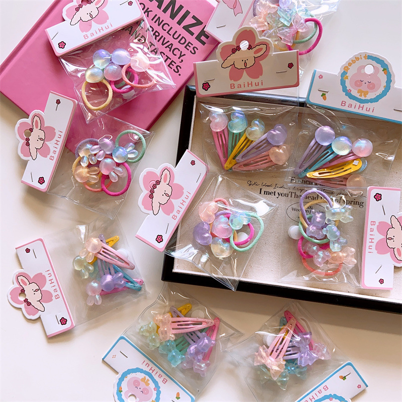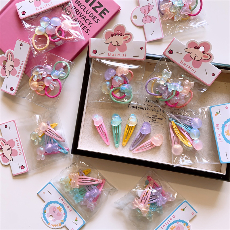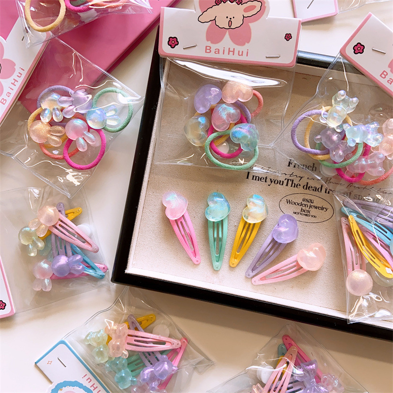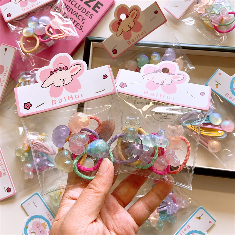 | nameOriginal | Spring and summer Korean children's cute love shape hair ring girls laser flash geometric head rope 5 color bags |