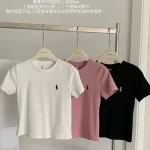 Spring and summer Korean style pony embroidered logo T-shirt for women, short, simple, versatile, slim, fashionable cotton 3-color T-shirt