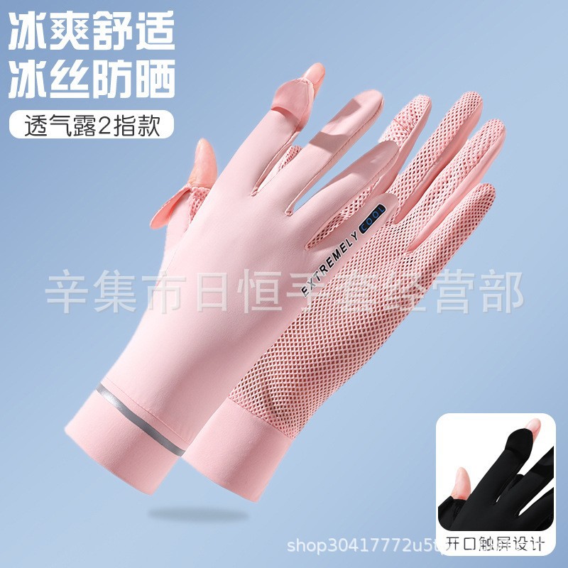 | nameOriginal | Spring and summer ladies ice silk mesh two-finger thin sunscreen gloves outdoor anti-ultraviolet driving touch screen gloves wholesale |