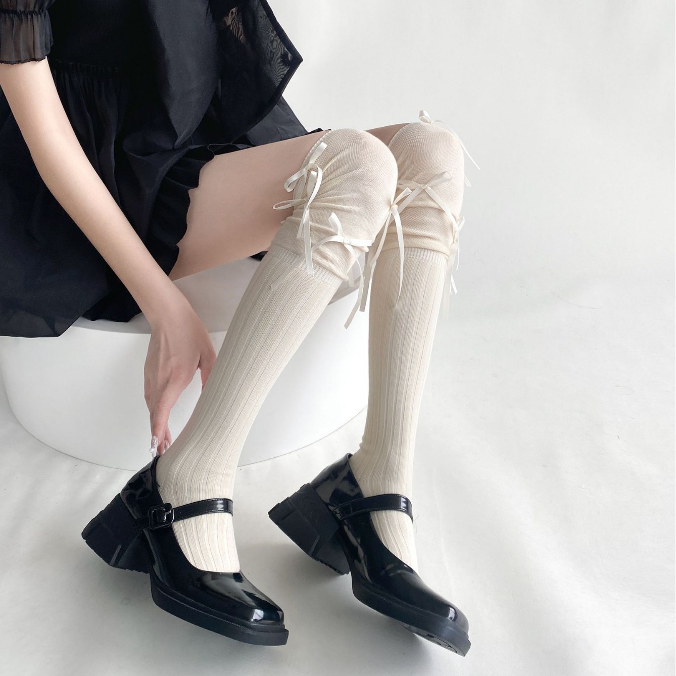 Spring and Summer Long Tube Stacked Socks Children’s Bow Knee Socks Thin Japanese Girl Cotton Socks Niche Design Boots Socks