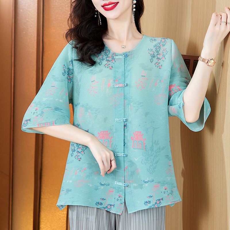 | nameOriginal | Spring and summer Miyake national style new Chinese style printing mother elastic temperament women's fashion elegant pleated mother suit |