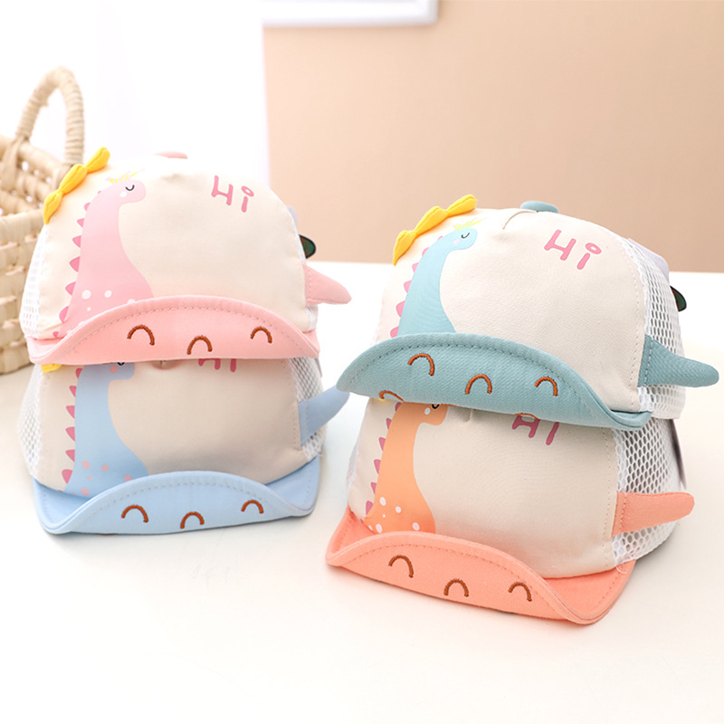 | nameOriginal | Spring and summer new baby net cap baby cartoon small dinosaur soft edge baseball cap super cute children's sunshade hat |