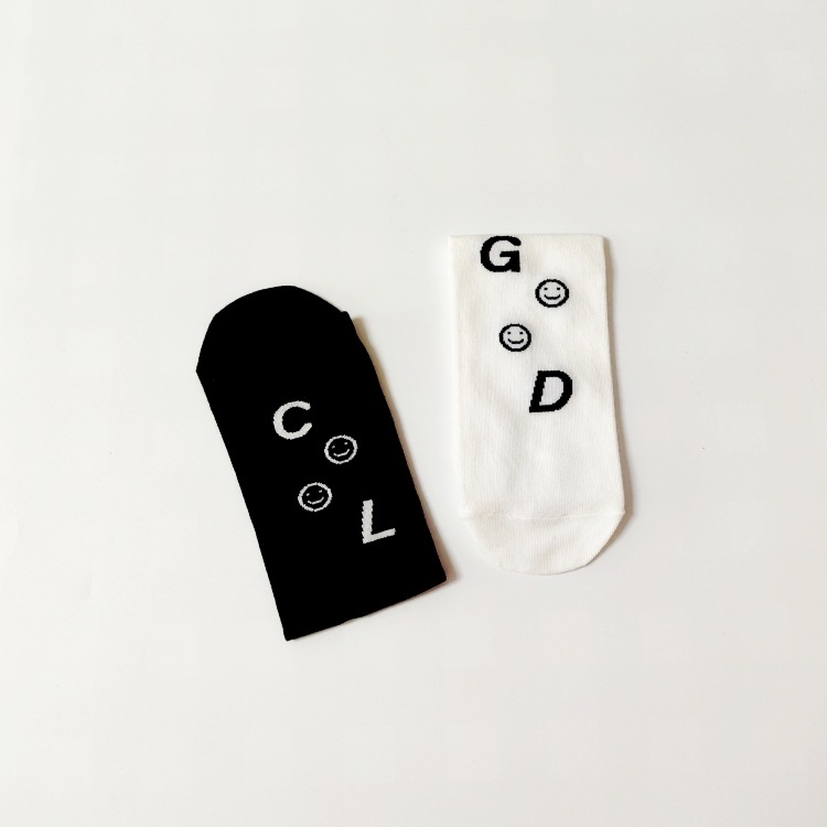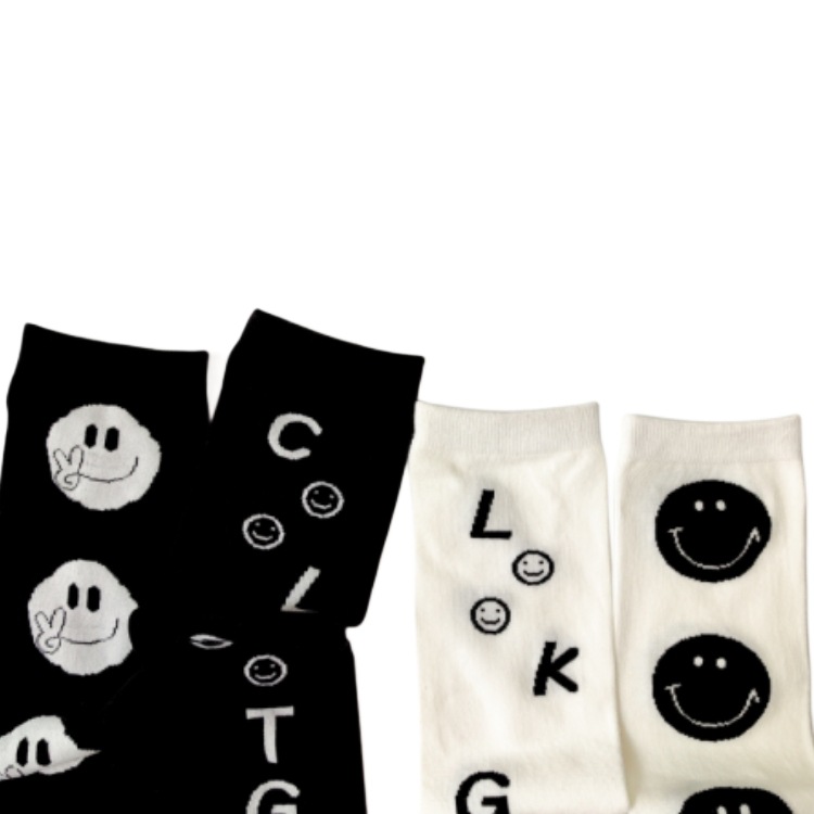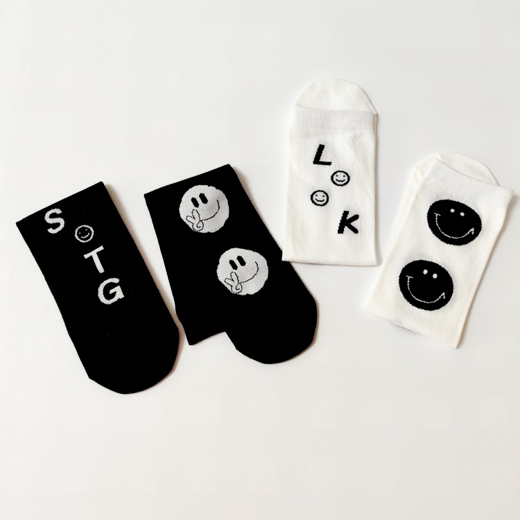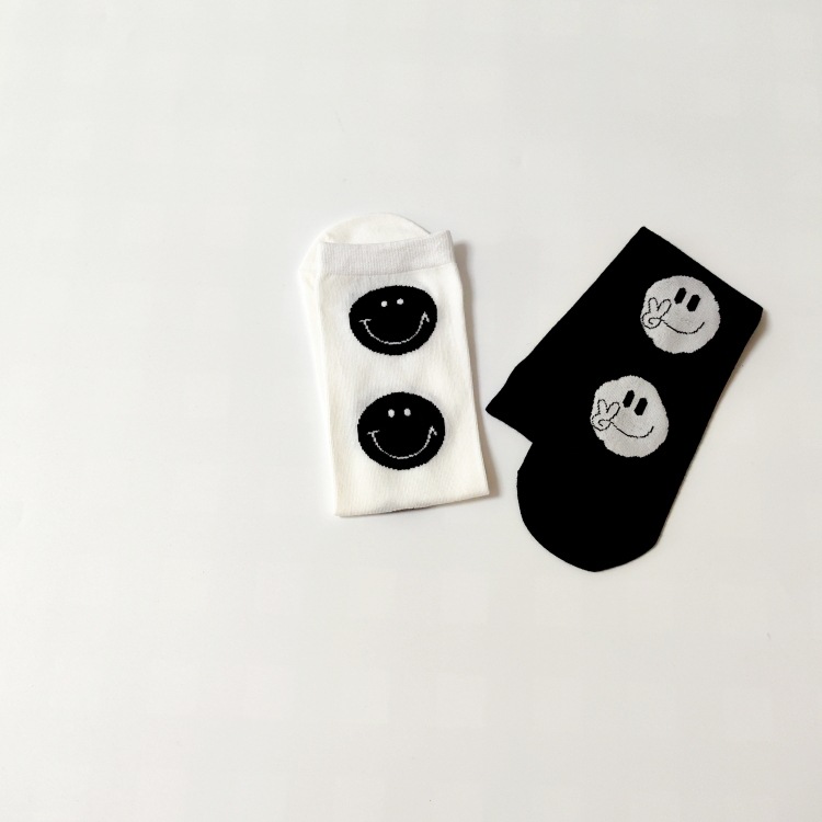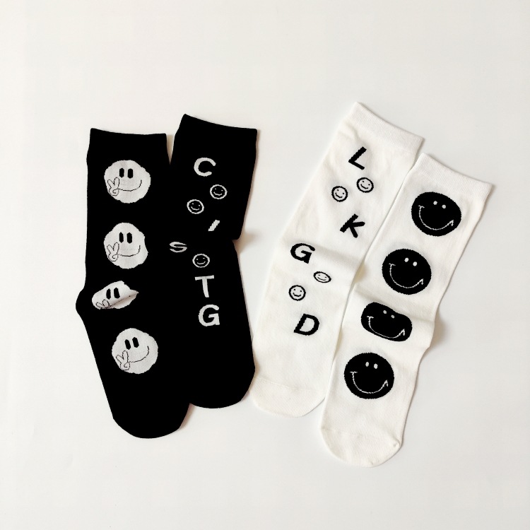 | nameOriginal | Spring and Summer new black and white left and right feet smiley face straight board boys and girls socks student parent-child socks |