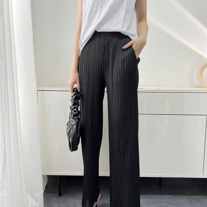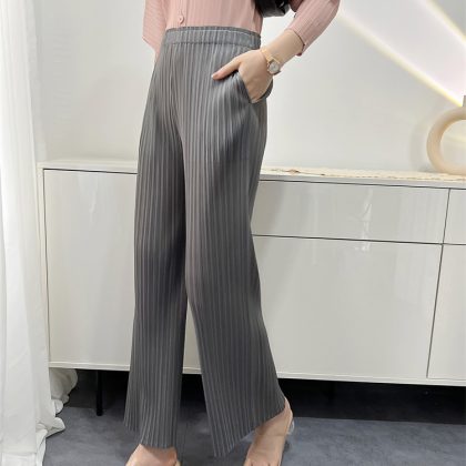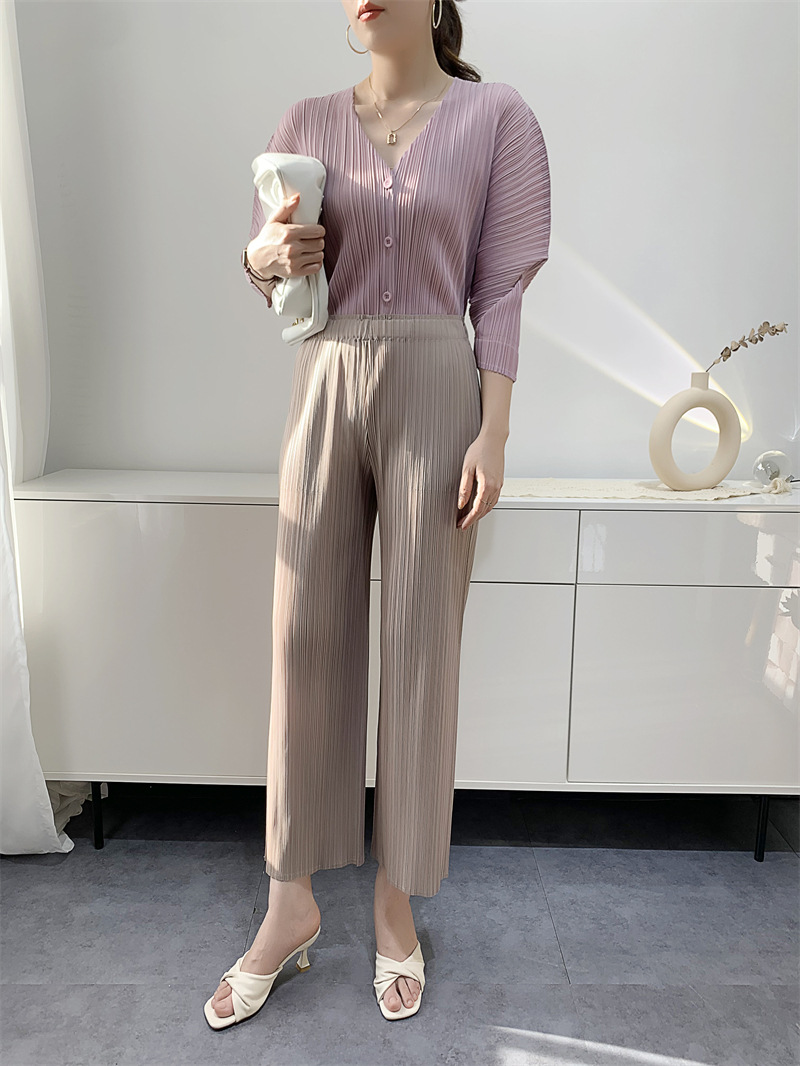| nameOriginal | Spring and Summer New Casual Pants Simple Loose Comfortable Casual Stretch Pleated Straight Ankle-length Pants Women's Niche KK Pleated |