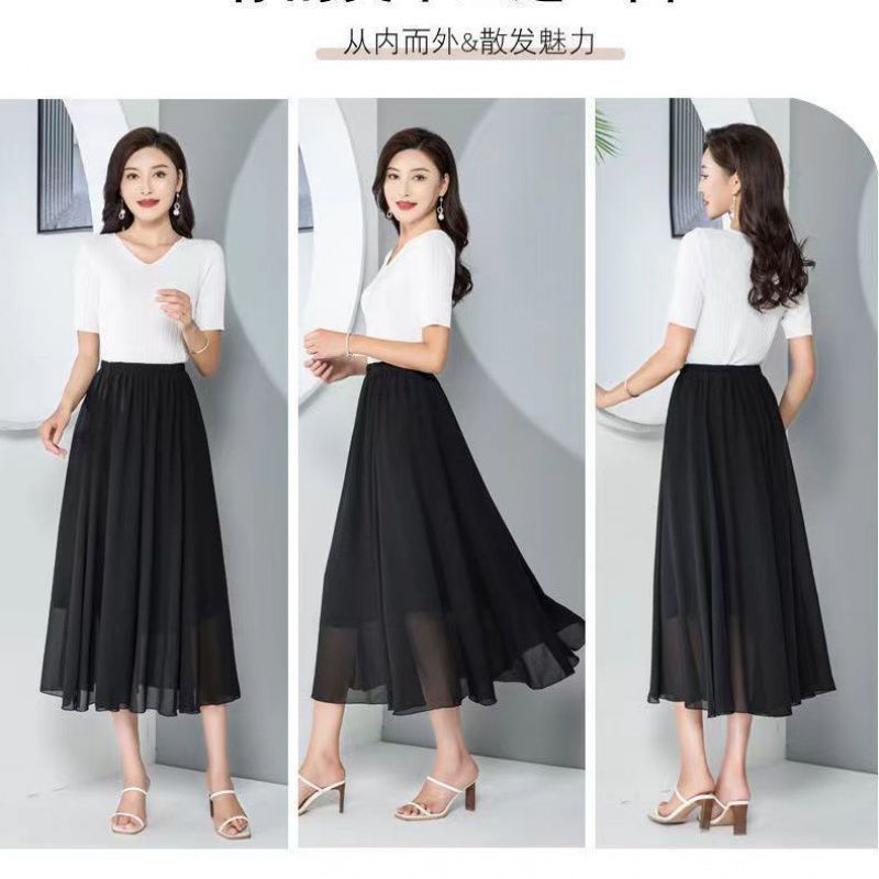 | nameOriginal | Spring and Summer New Chiffon Large Swing Skirt Women's All-match Square Dance Mid-length Skirt Large Code Word High Waist Breathable Long Skirt |