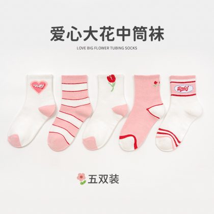 Spring and Summer new children’s socks boys and girls Middle and big children’s baby socks pink cartoon cute student mid-calf socks