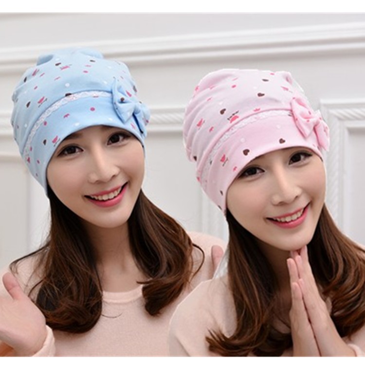 Spring and Summer new confinement cap combed laibi cotton printed bow maternity hat elastic maternity hat factory direct sales