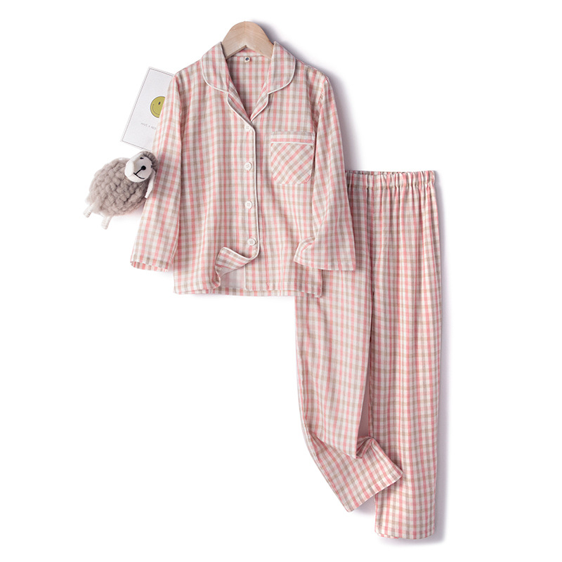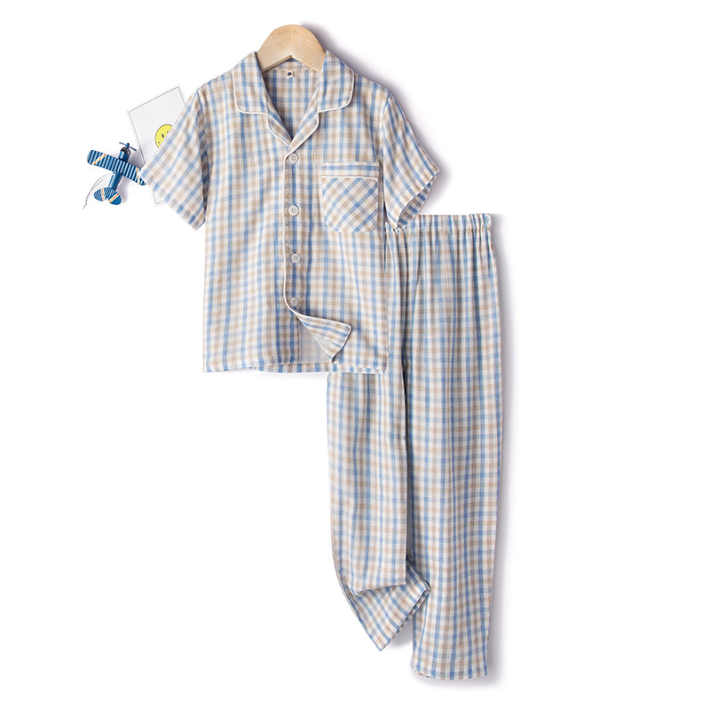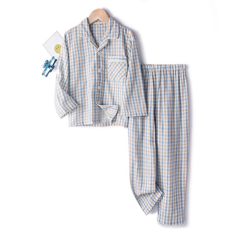 | nameOriginal | Spring and summer new cotton color spinning non-printing small double-layer yarn children's pajamas set cotton home clothing wholesale |