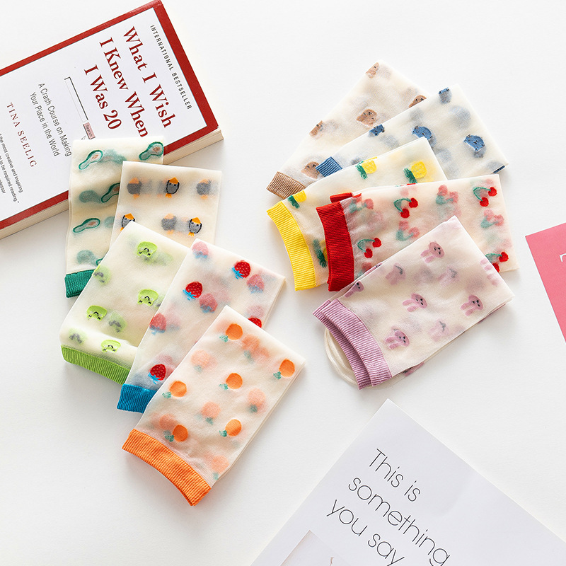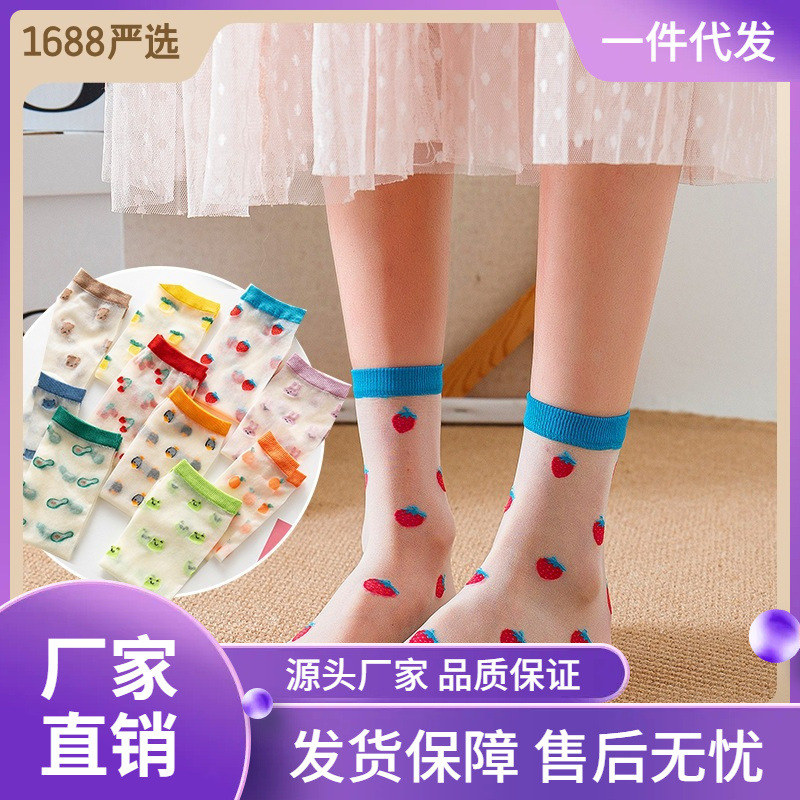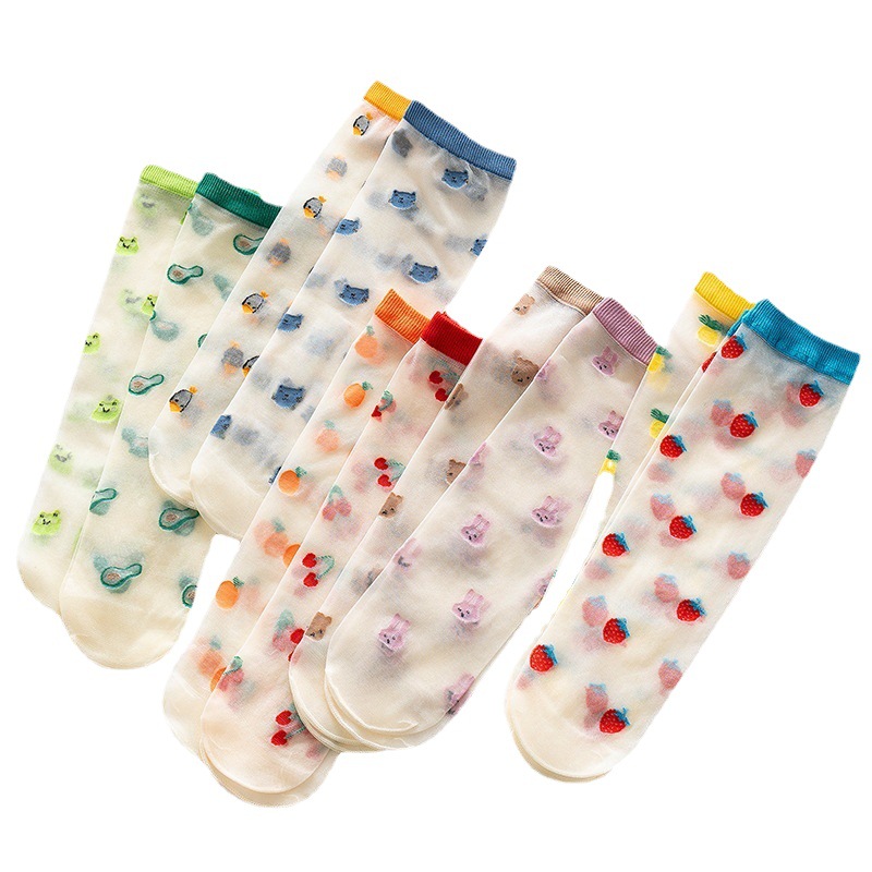 | nameOriginal | Spring and summer new crystal silk socks women's Japanese fruit card silk tube socks ultra-thin glass silk ice ice socks |