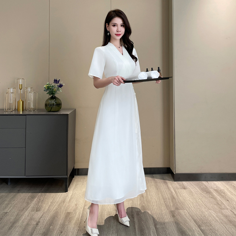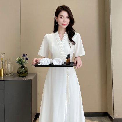 Spring and Summer New Foot Therapy Foot Bath Technician Work Clothes Women’s Long Ear-picking spa Massage Club Short-sleeved Elegant Suit