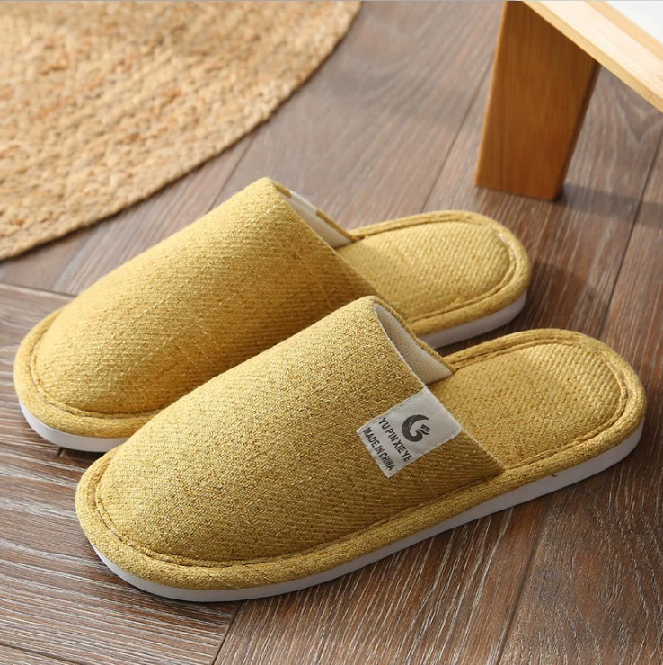 New indoor wooden floor comfortable linen slippers for spring and summer, four seasons, couples, home thick-soled cotton linen