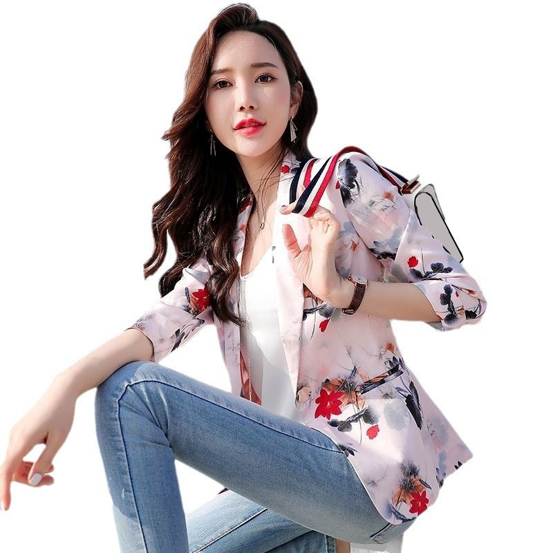 | nameOriginal | Spring and Summer New Internet Celebrity Artistic Printed Small Suit Jacket Women's Fashionable Casual One-Button Short Seven-Sleeve Suit |