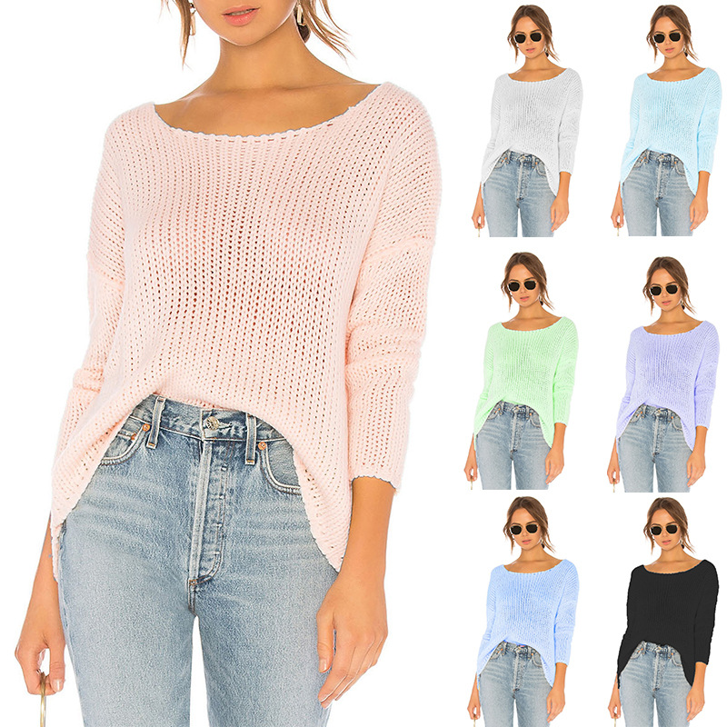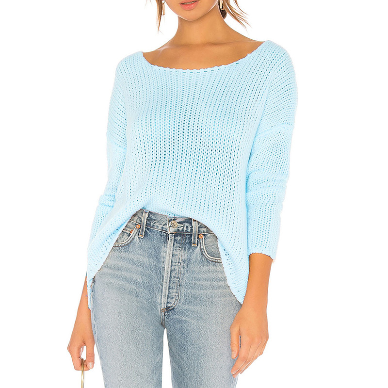 Spring and Summer new knitwear off-neck hollow loose knitted pullover sun protection clothing sweater women’s pullover