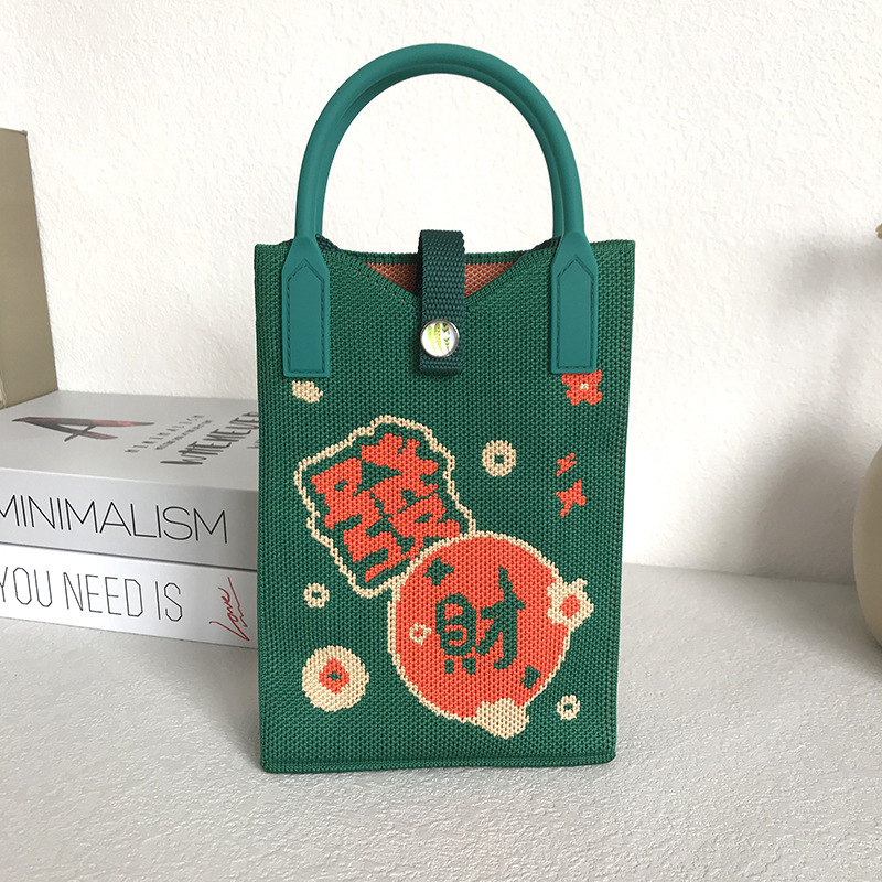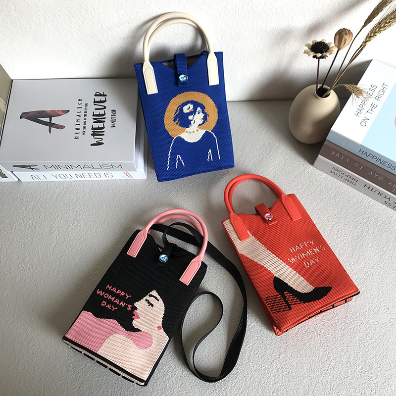 Spring and Summer New Korean Style Niche Design Cute Mini Mobile Phone Bag Knitted Unit Price Crossbody Bag Portable Hand Bag