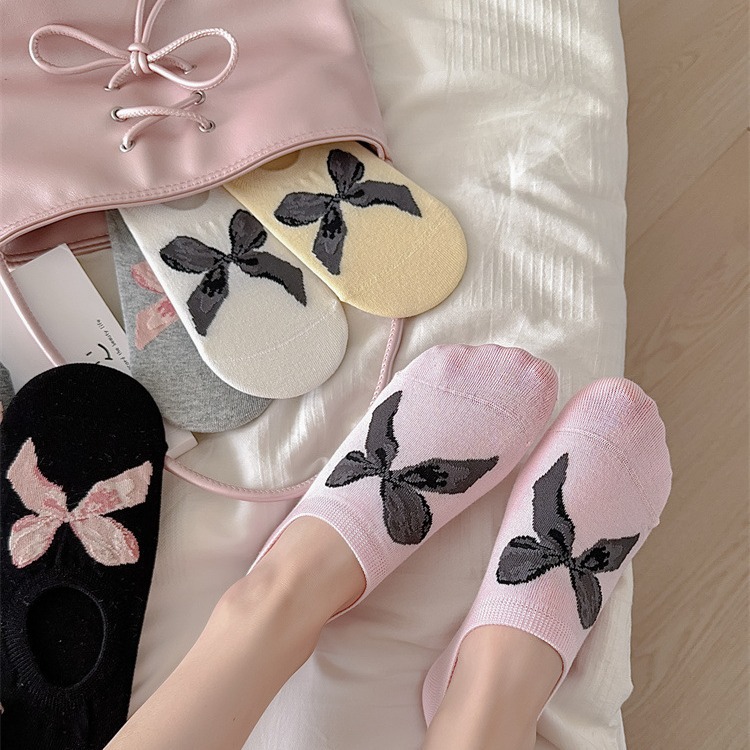 | nameOriginal | Spring and Summer New Korean Style Sweet Big Bow Socks Women's Non-slip Ins Trendy Non-falling Heel Shallow Top Boat Socks Invisible Socks |