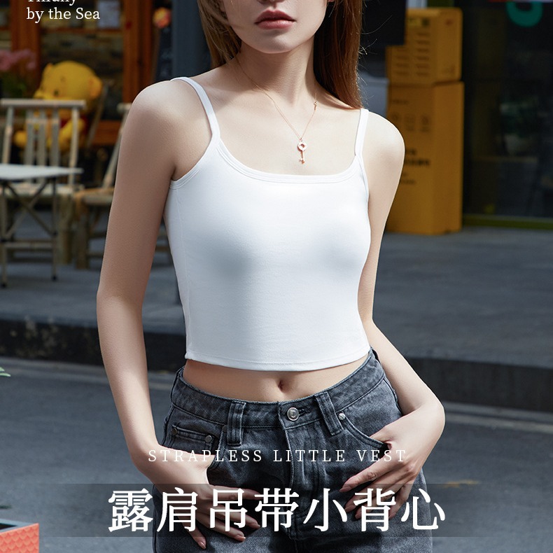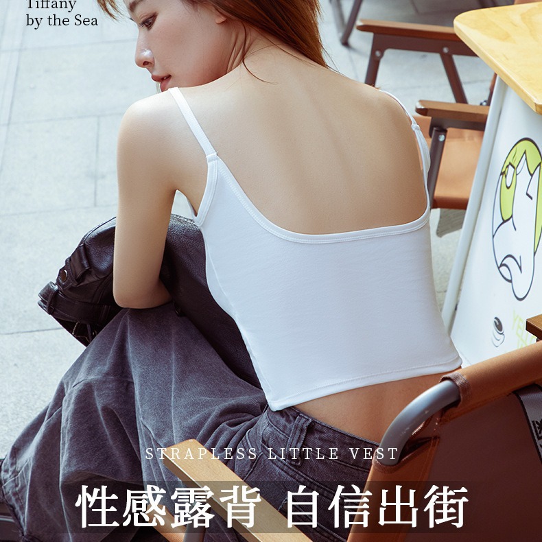 Spring and Summer New Large U Beautiful Back Pure Cotton Camisole Underwear Women’s Underwear with Chest Pad Fixed Cup Wrap Chest Outer Wear Base Women