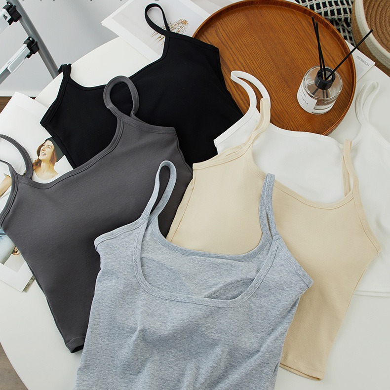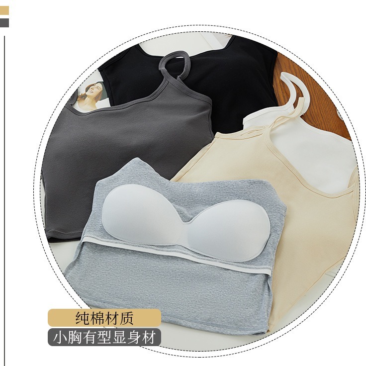 Spring and Summer New Large U Beautiful Back Pure Cotton Camisole Underwear Women's Underwear with Chest Pad Fixed Cup Wrap Chest Outer Wear Base Women