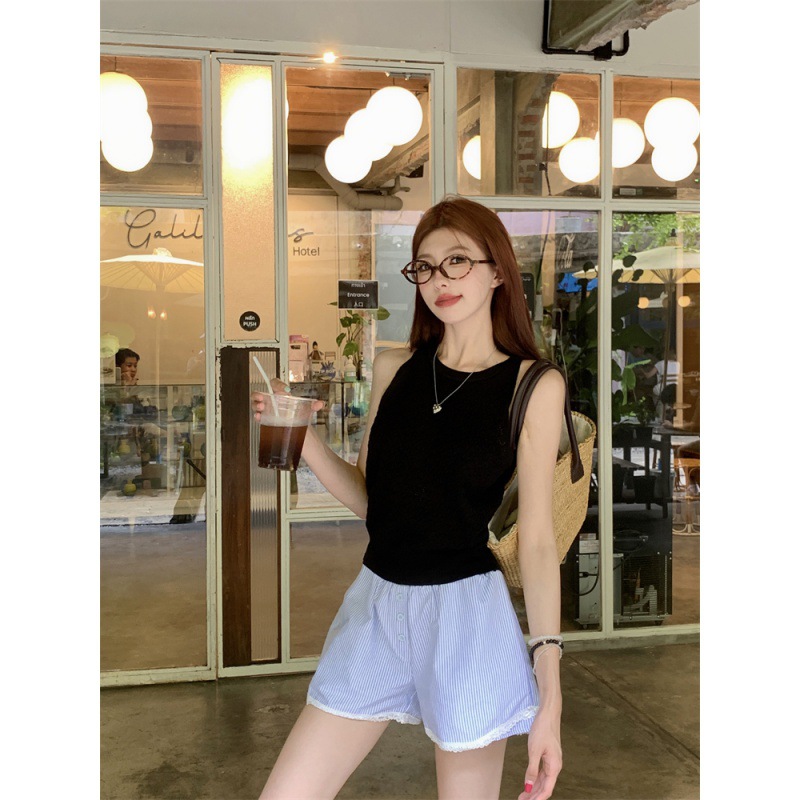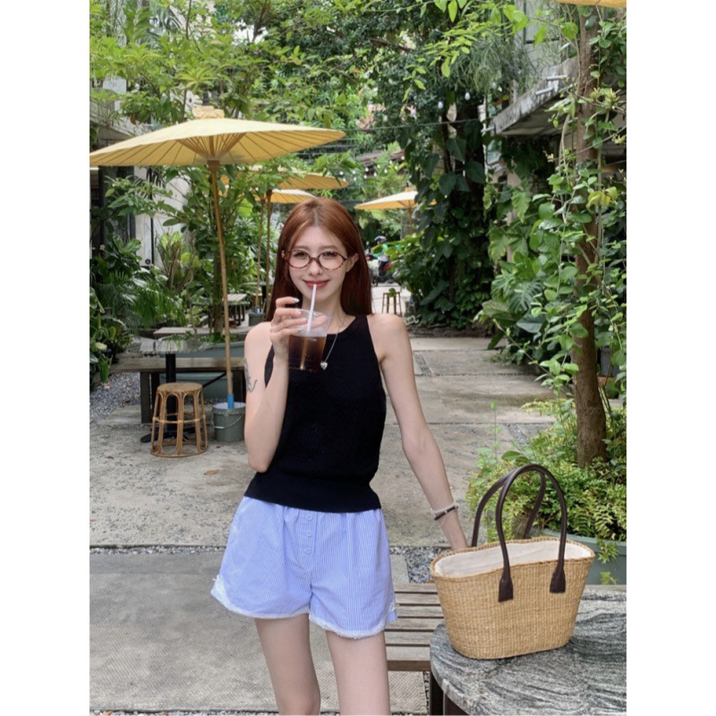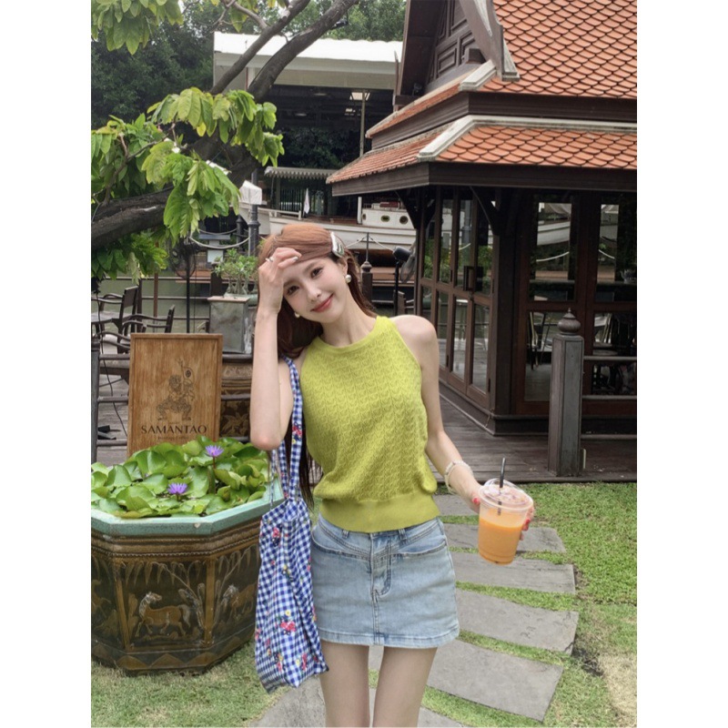 | nameOriginal | ~ Spring and Summer New ~ Lime Bubble Knitted Shirt Sling Vest Women's Lazy Round Neck Sleeveless Top |
