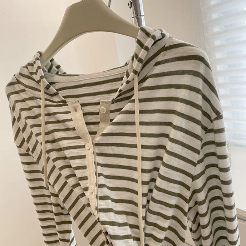 | nameOriginal | Spring and Summer New Loose All-match Thin Long-sleeved Sun-protective Clothing Air Conditioning Korean Striped Hooded Cardigan Thin Coat |