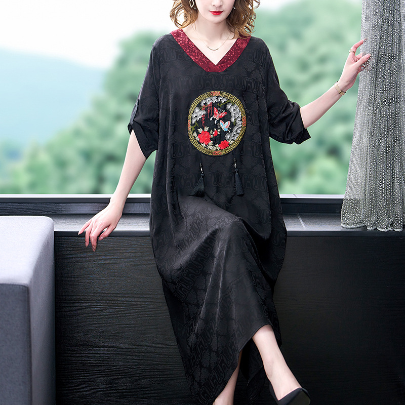 | nameOriginal | Spring and Summer New Mid-Sleeve Silk Ethnic Dress Loose Slimming Large Size Women's Clothing for Mother |
