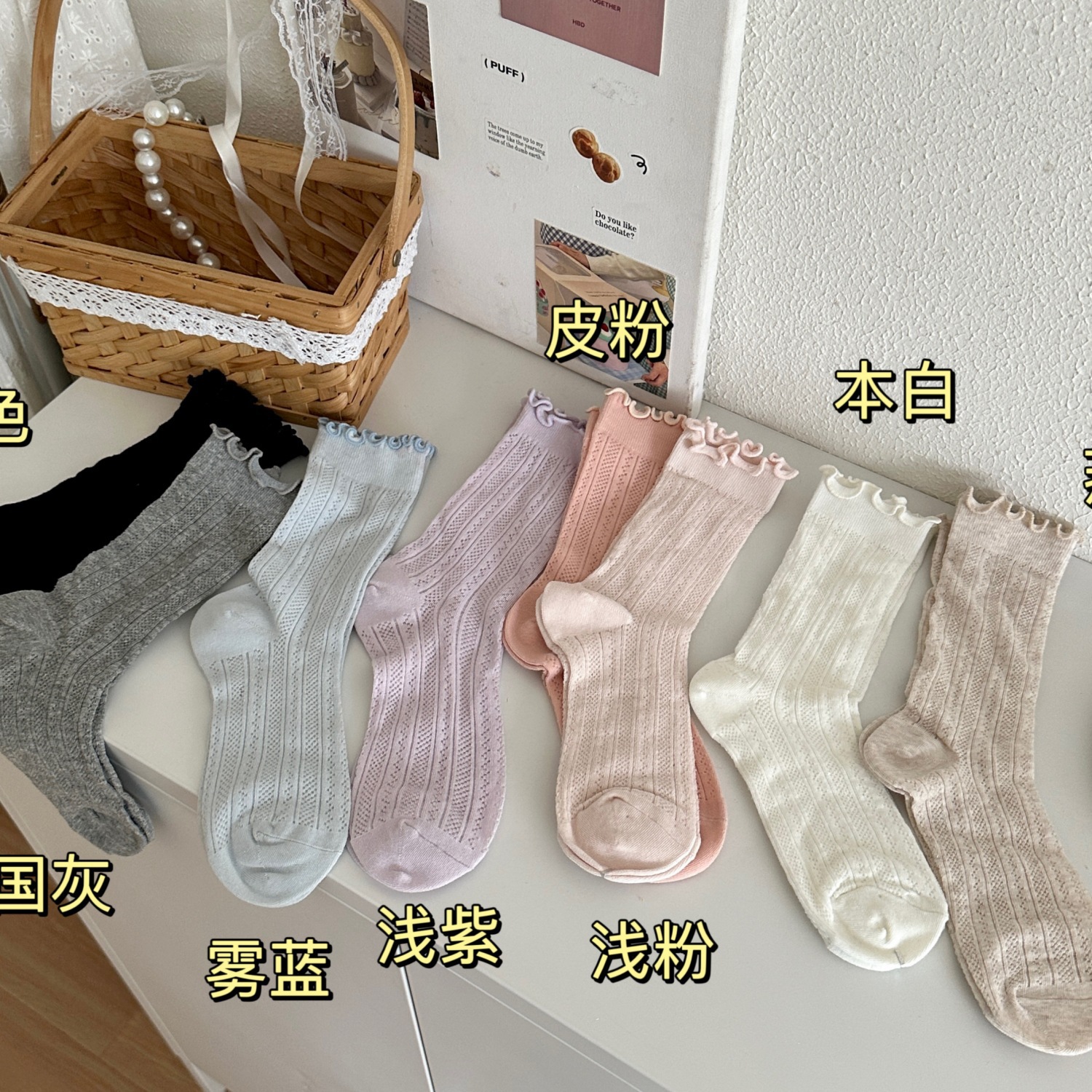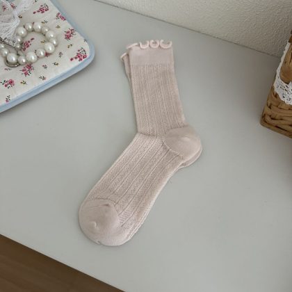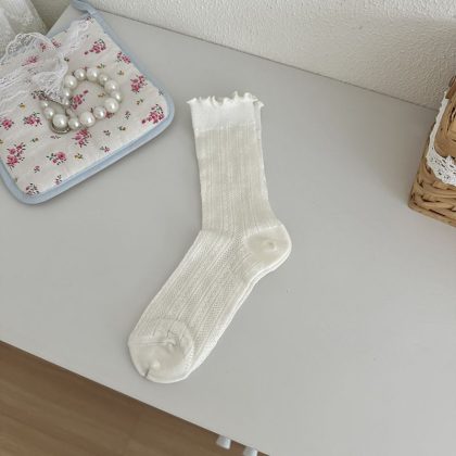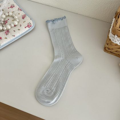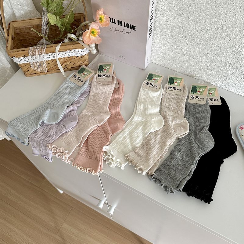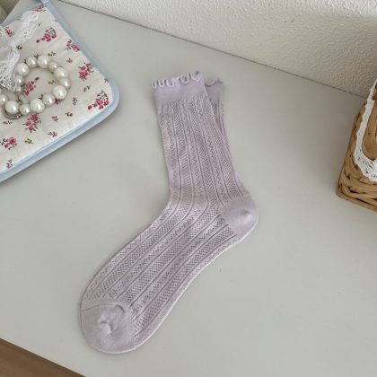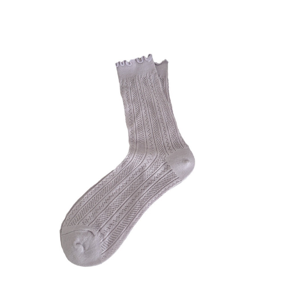 | nameOriginal | Spring and Summer New Miu Sweet Style Women's Socks Mori Style Wood Ear Hollow Mesh Women's Cotton Socks Mid-tube Stacked Socks |