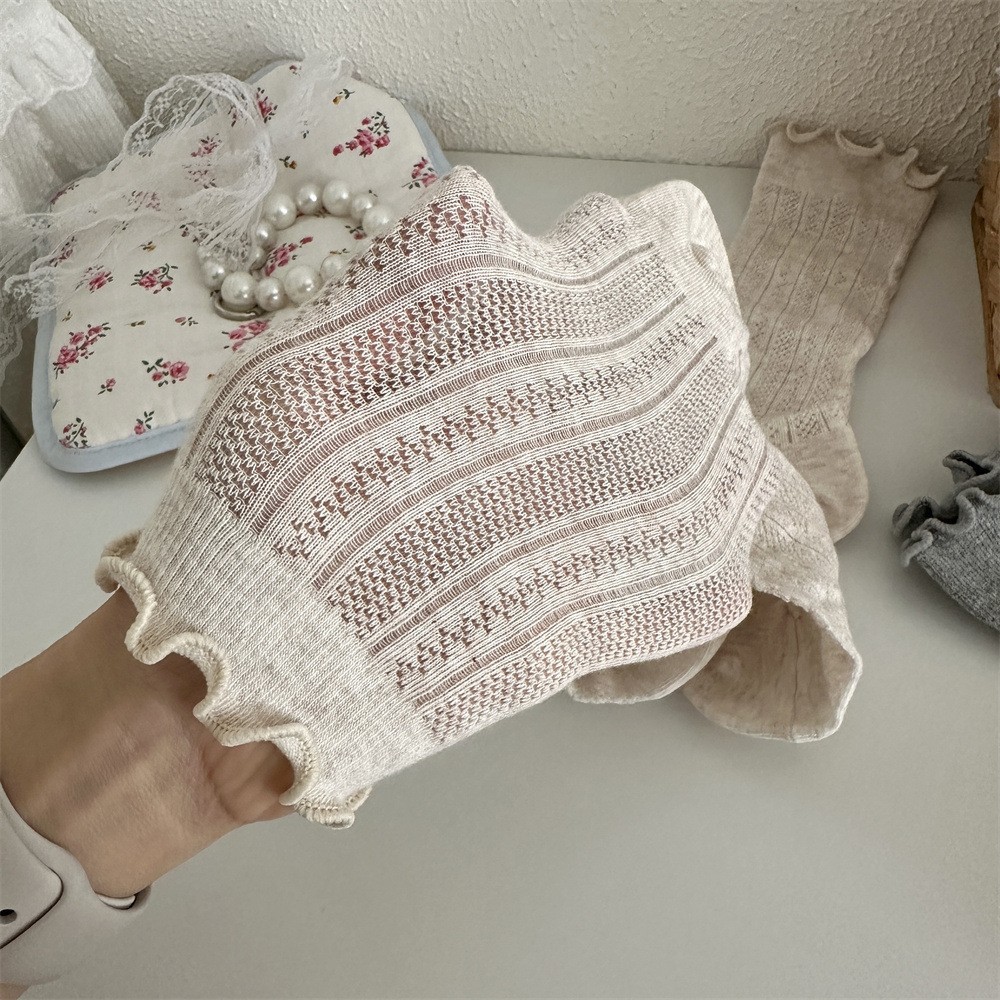 Spring and summer new miu sweet style women’s wooden ear hollow mesh jk socks women’s cotton socks tube piled socks for women