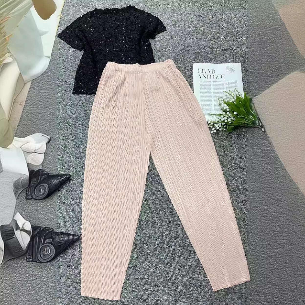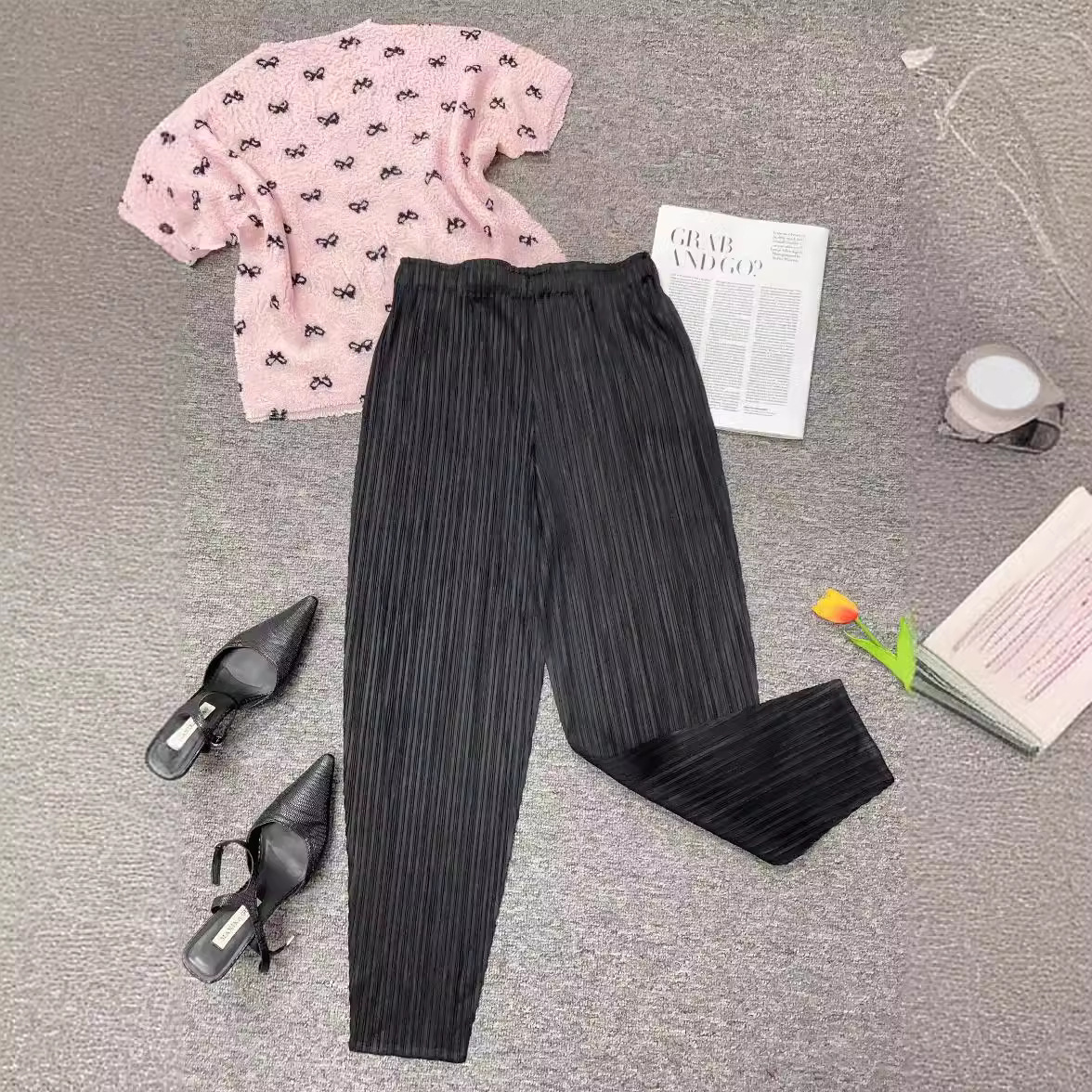 Spring and Summer New Miyake Style Women’s Small Feet Pleated Design High Waist Slimming All-match Fashion