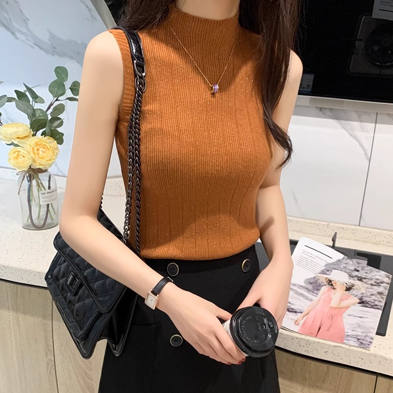 | nameOriginal | Spring and summer new semi-high collar flash sleeveless women's sweater early autumn suit slim-fit bottoming vest pullover sweater |